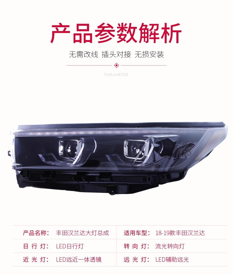 - Enhanced Aesthetics & Style: Featuring a stylish spoon-shaped LED daytime running light and dynamic flowing turn signals, this headlamp upgrades your Highlander’s appearance with a modern, distinctive look.