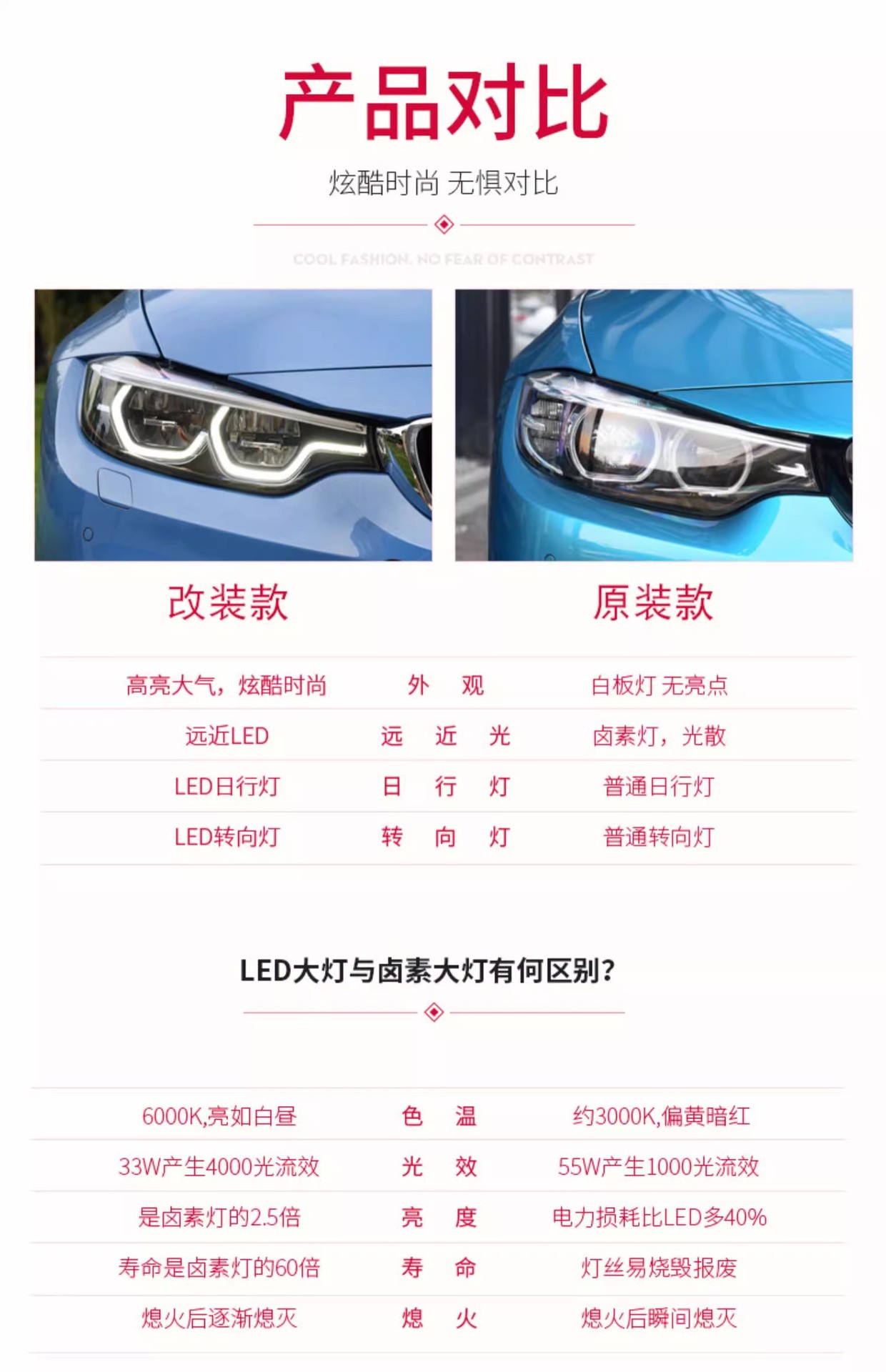 - GTS Style Design: Enhances your BMW 4 Series with a distinctive GTS-inspired ‘spoon’ LED daytime running light design, improving aesthetics and visibility.