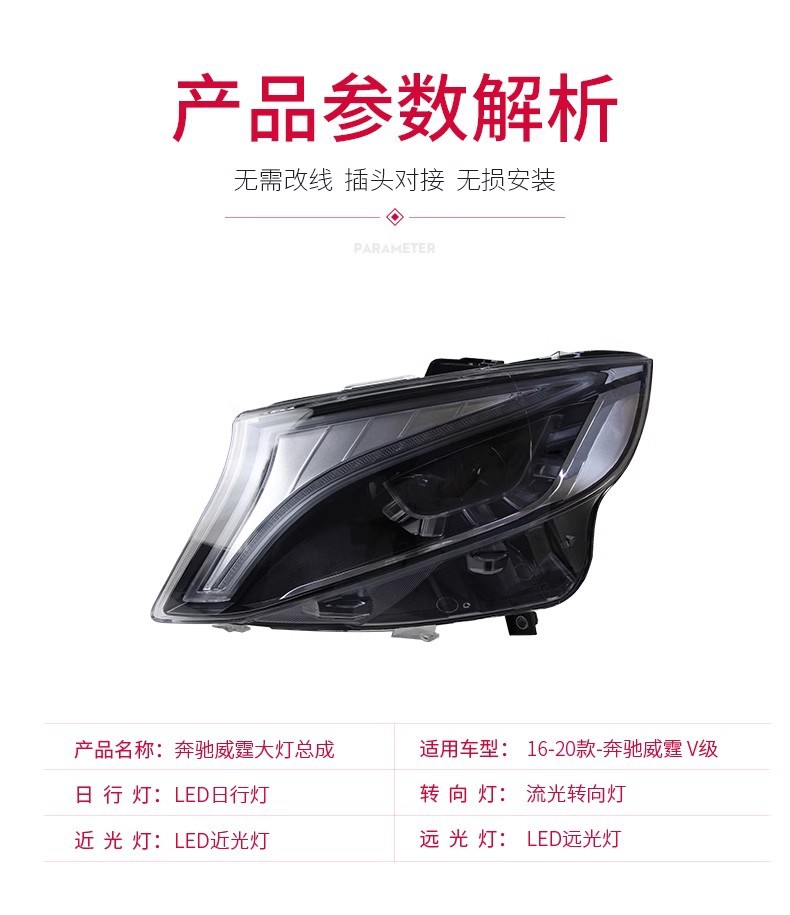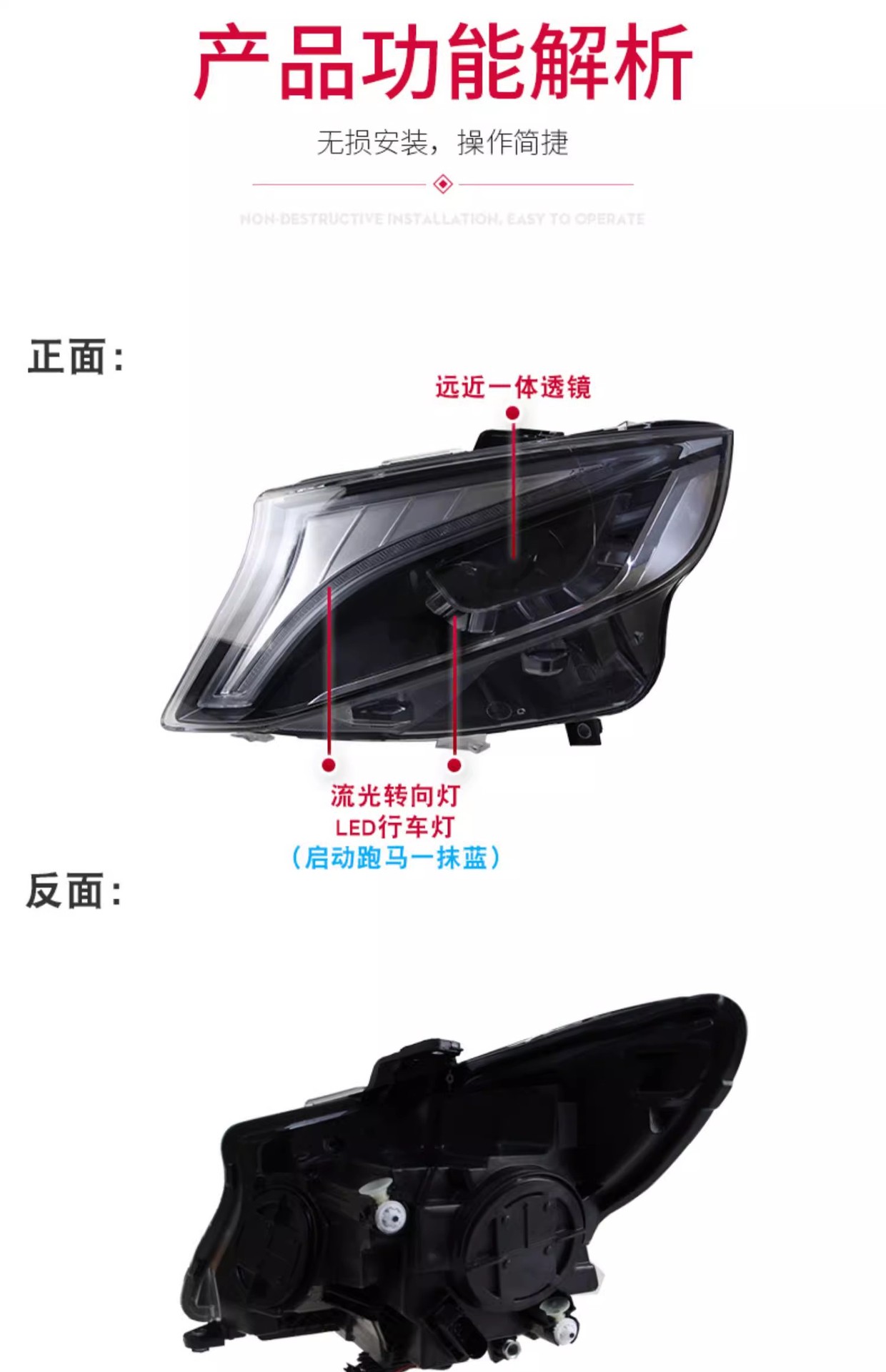 - Direct Fitment: A perfect replacement for the original headlight assembly. Compatible with Mercedes-Benz V-Class, Vito, Metris 2016-2020 models. Designed for precise integration.