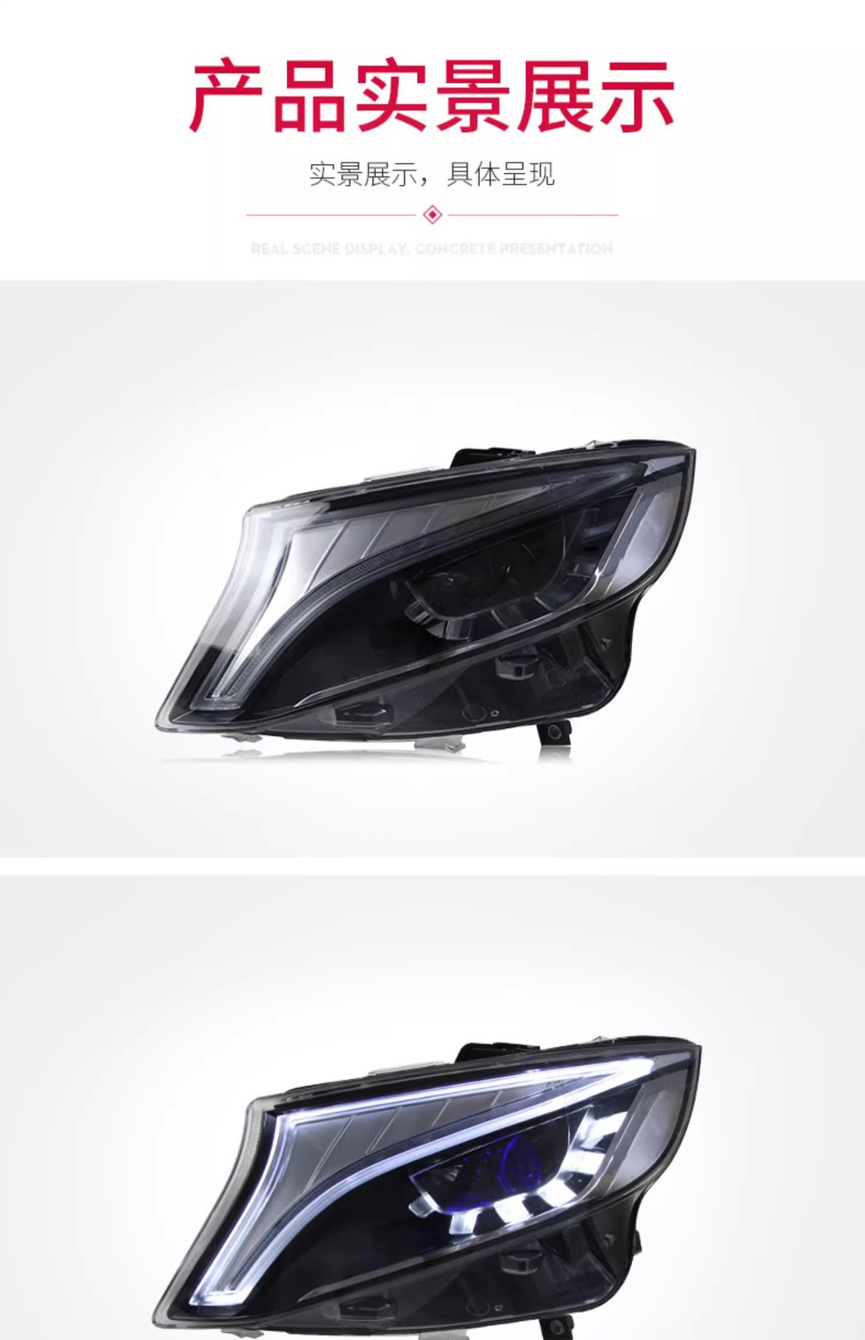 LED Headlight Assembly with Integrated Lens DRL Sequential Turn Signal for Mercedes-Benz V-Class Vito Metris 2016-2020