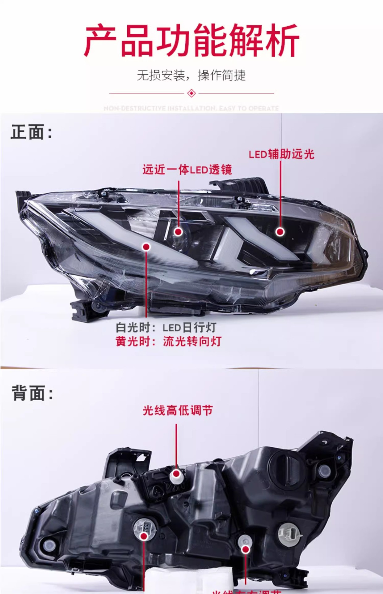 - Direct Fitment: A perfect replacement for the original headlights. Compatible with Honda Civic 10th Generation models. Replaces OE part numbers: Not available.