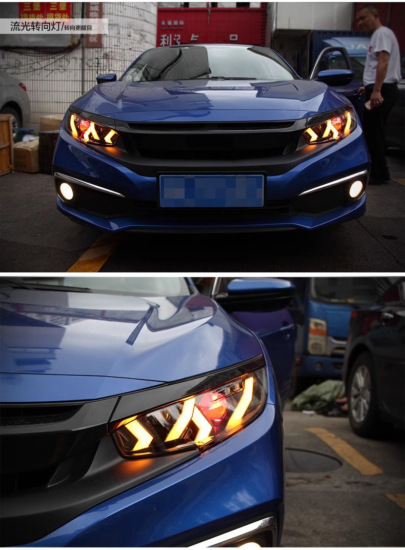 LED Headlight Assembly with Integrated Lens DRL Sequential Turn Signal for Honda Civic 10th Generation