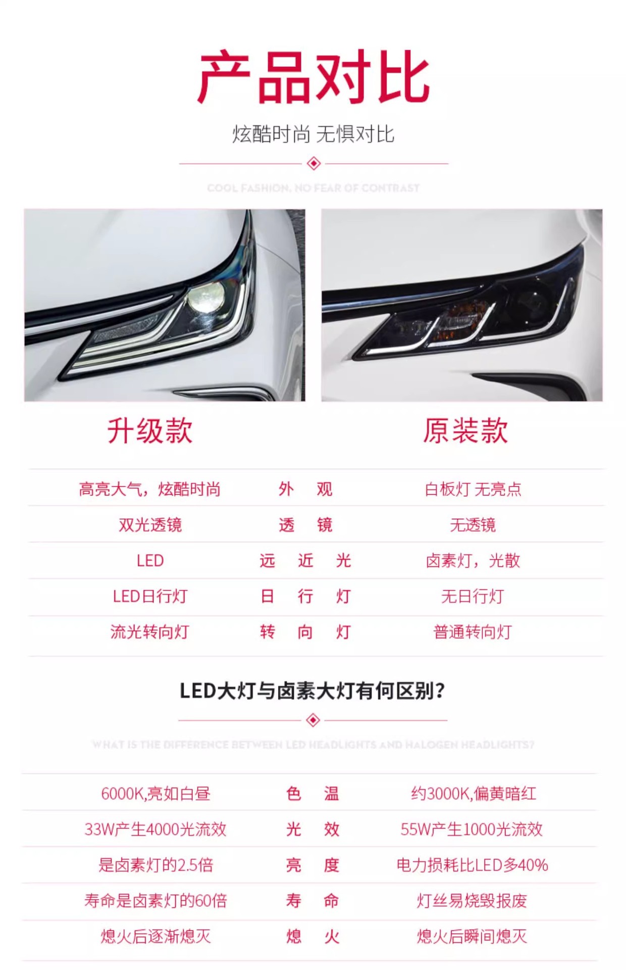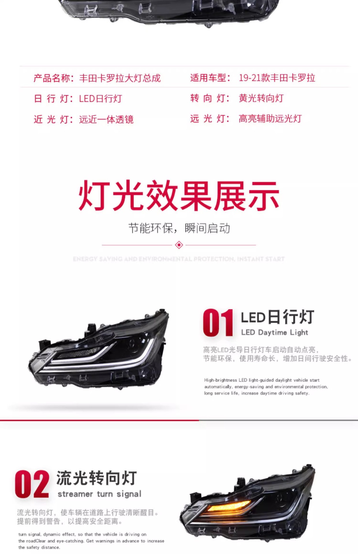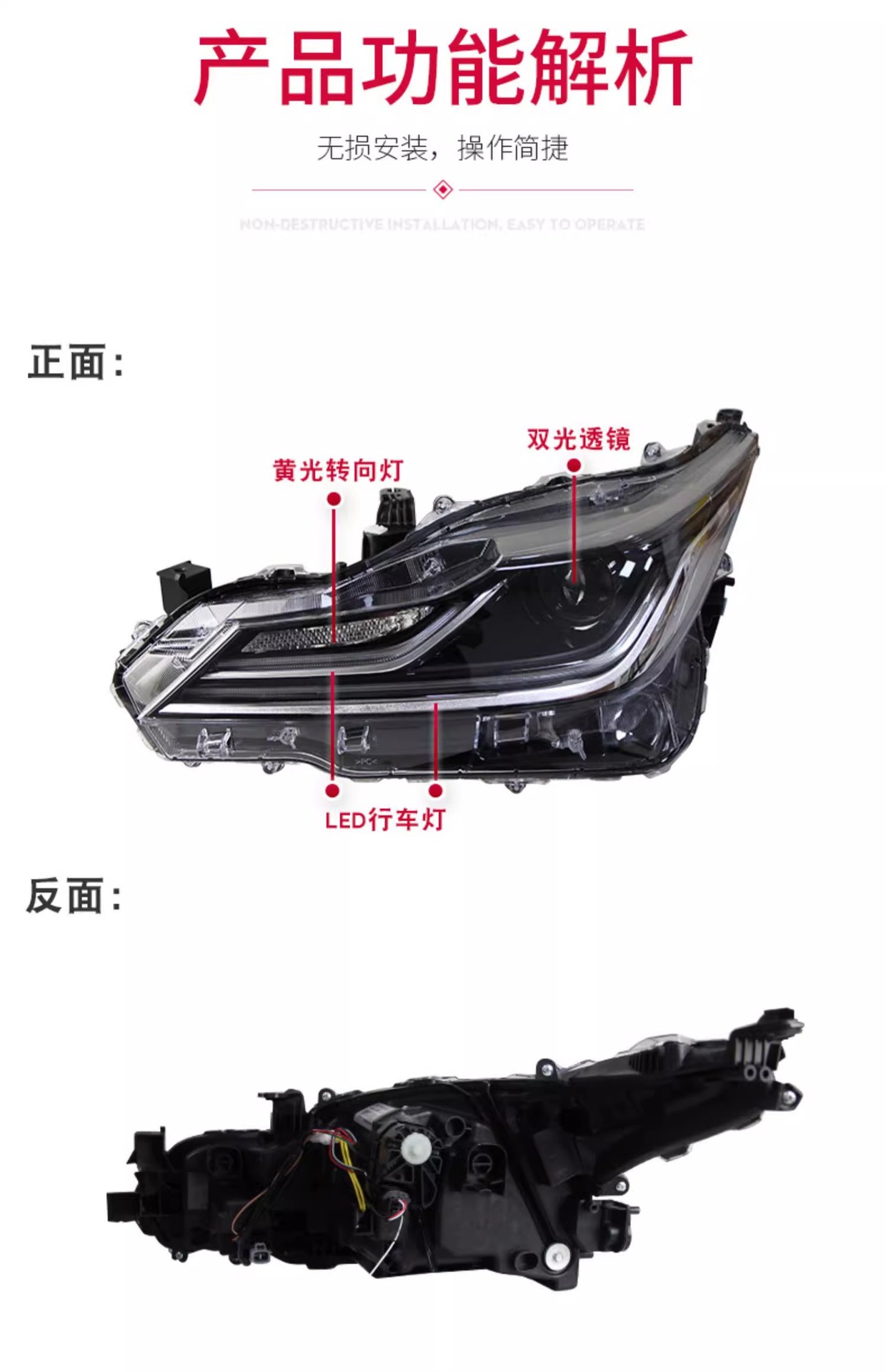 - Direct Fitment: A perfect replacement for Toyota New Corolla. Compatible with 2019, 2020, 2021 models. Upgrade low-end to high-end LED headlight.