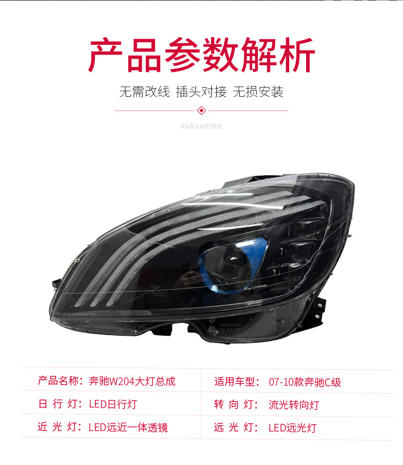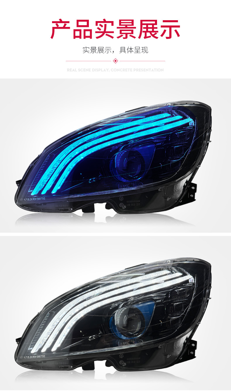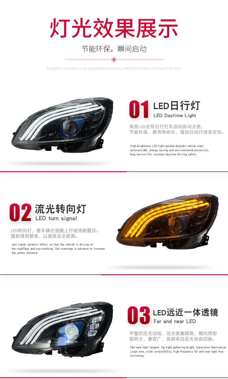 LED Headlight Assembly with Integrated Projector DRL Sequential Turn Signal for Mercedes-Benz C-Class W204 2007-2010