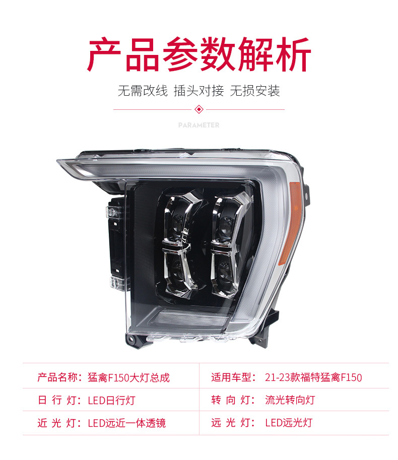 - Direct Fitment: A perfect replacement headlight assembly. Compatible with Ford F-150 Raptor 2021-2023 models.
