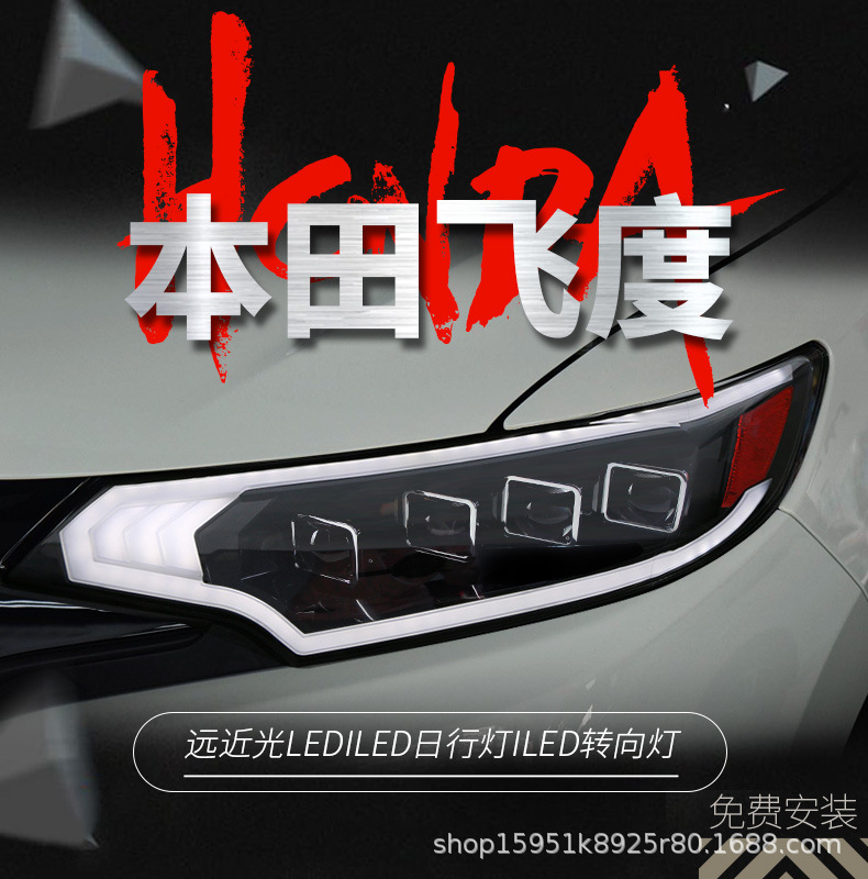 LED Headlight Assembly with LED DRL Turn Signal Projector Lens for Honda Fit (2014-2020)