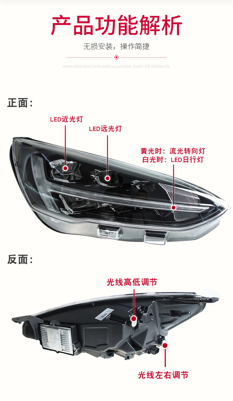 - Precise Fitment: Specifically designed for Ford Focus 2019 models, ensuring a perfect and seamless integration with your vehicle’s original headlight system.