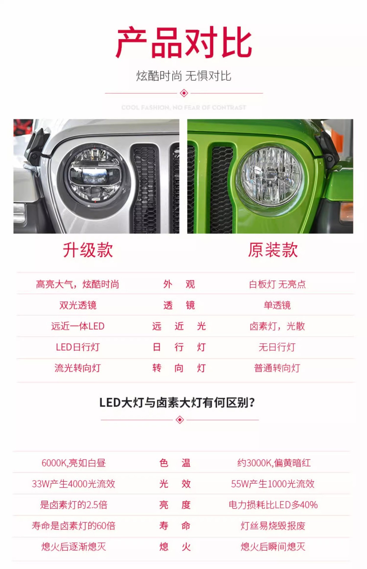 - Direct Fitment: A perfect replacement for Jeep Wrangler JL models from 2018-2021. Upgrades your vehicle with modern LED lighting.