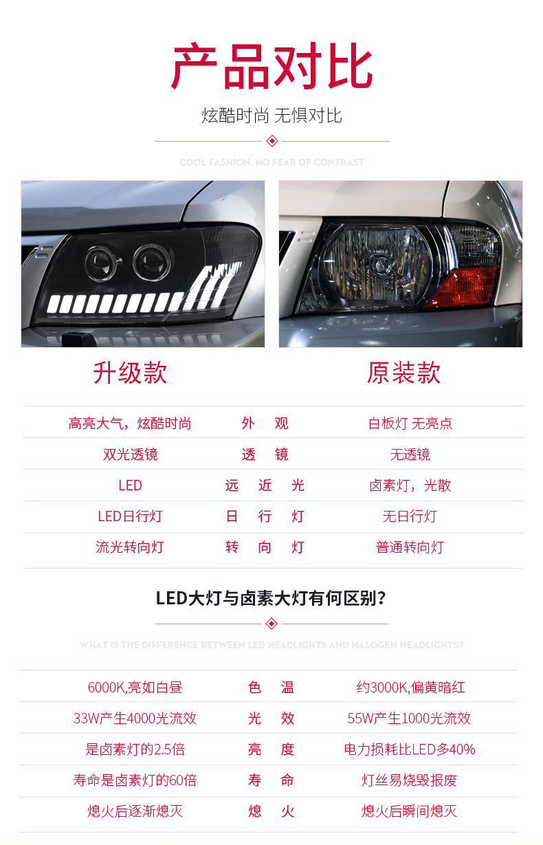 - Package Includes: One set of Pajero V73 dual-lens, 4-low beam, 4-high beam LED headlight assembly. A complete solution for a comprehensive and impactful lighting upgrade.