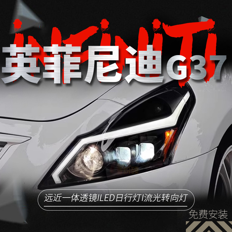 LED Headlight Assembly with Lightning Daytime Running Lights Sequential Turn Signal for Infiniti G37 G25 GTR