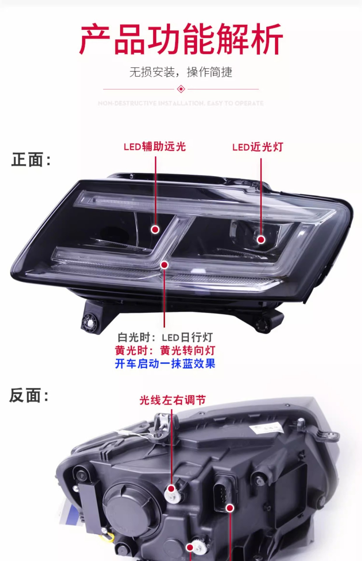 - Precise Fitment: Specifically designed for Audi Q5 models from 2009 to 2018, ensuring a perfect, direct-fit replacement for your original headlamp assembly. Upgrade your vehicle’s lighting with confidence.