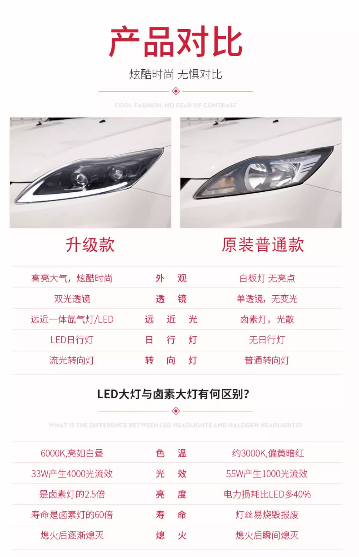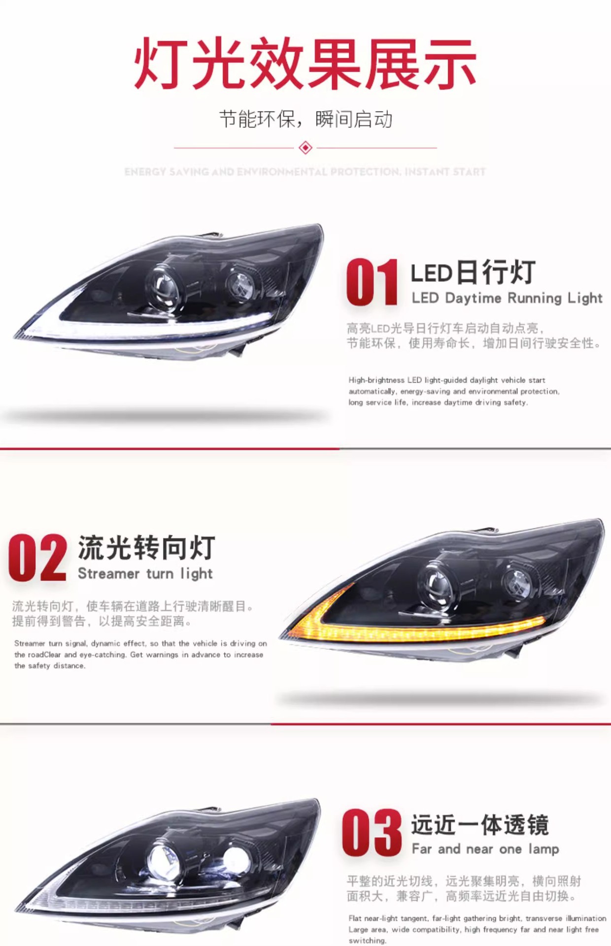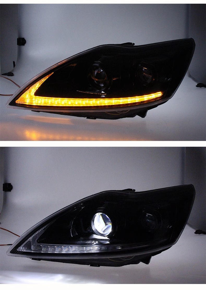 LED Headlight Assembly with Projector Lens DRL Sequential Turn Signal for Ford Focus MK2 2009-2013
