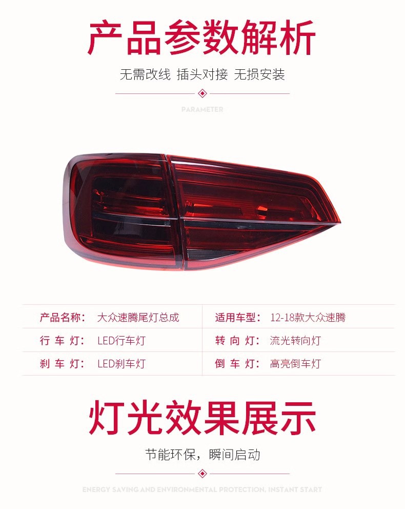 LED High-Configuration Tail Light Assembly Flowing Turn Signal for Volkswagen Sagitar (2015-2018)