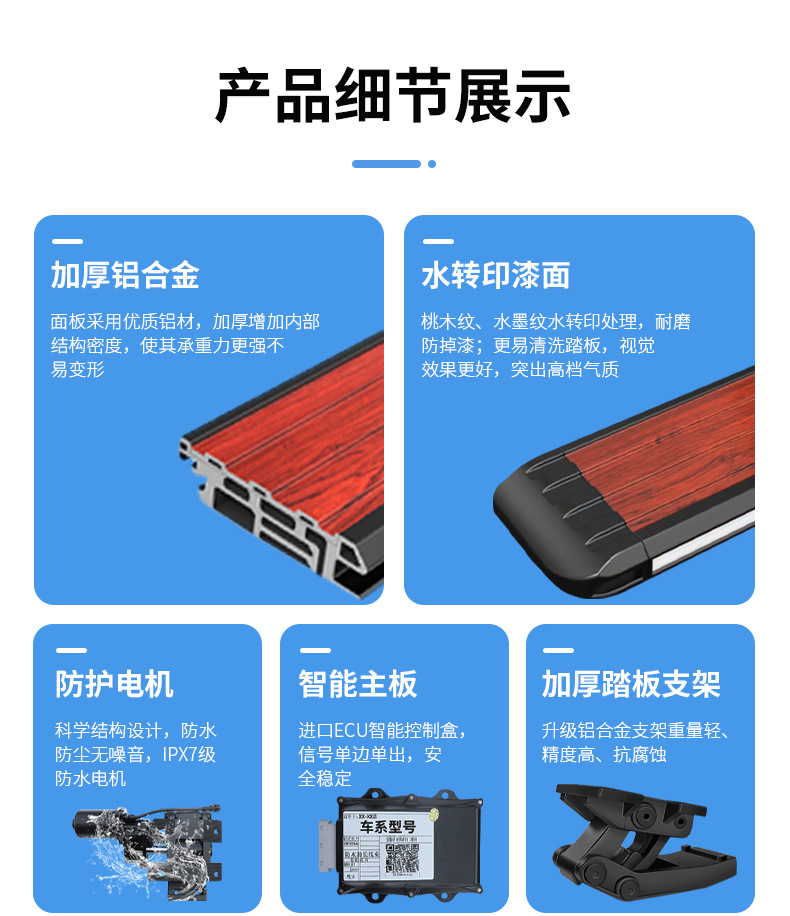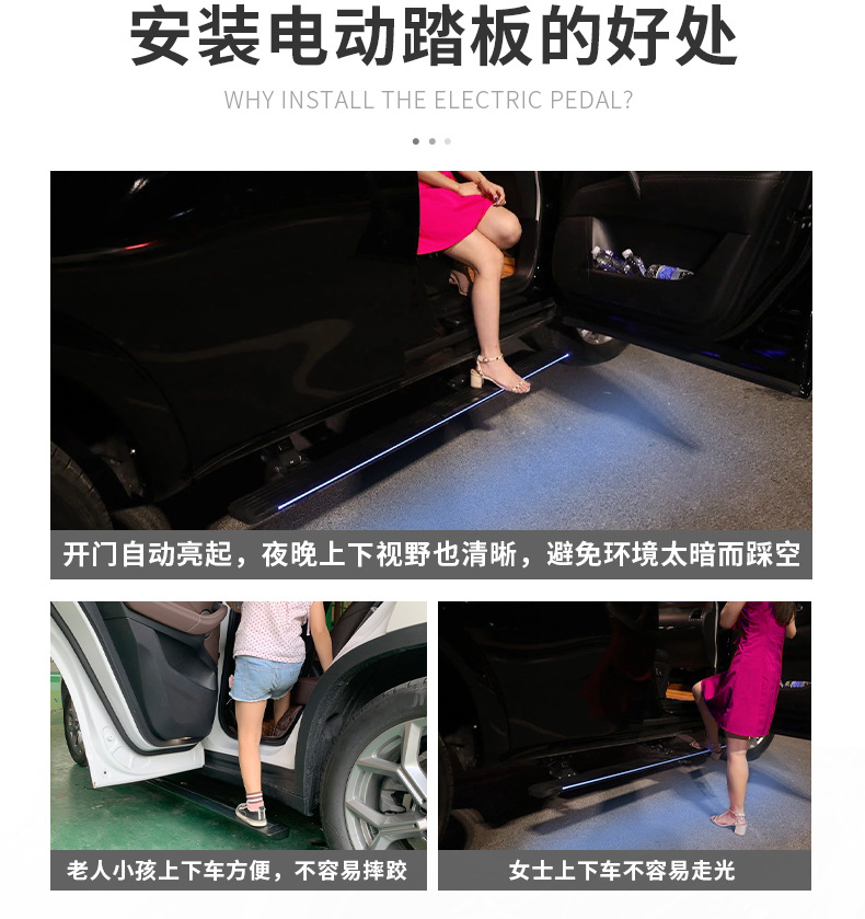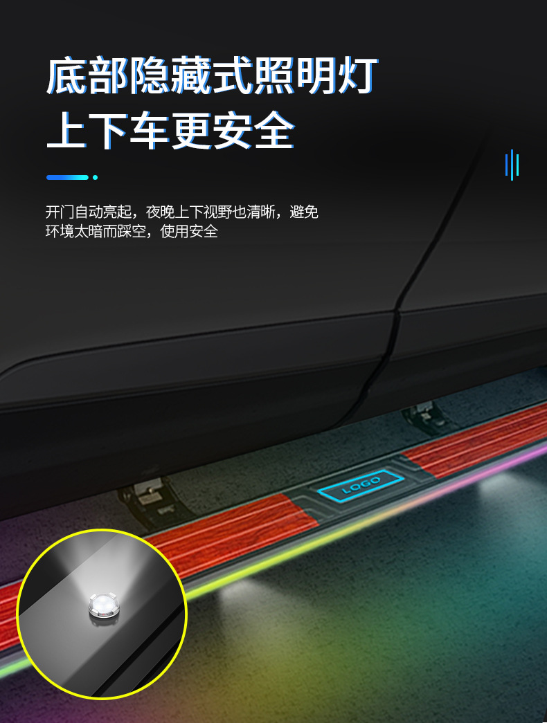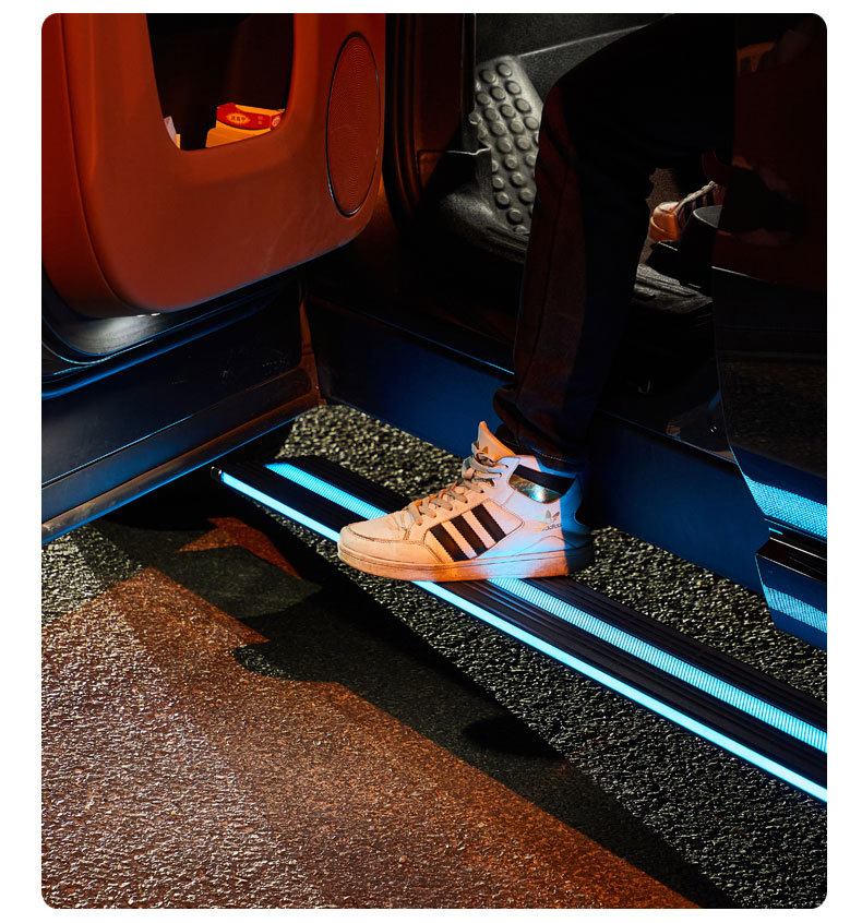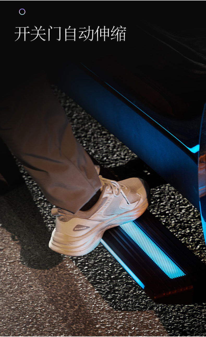 - Performance-Driven Design: Equipped with vibrant LED illumination that activates upon door opening, providing enhanced visibility and a stylish welcome. Features smart deployable functionality for easy entry and exit.