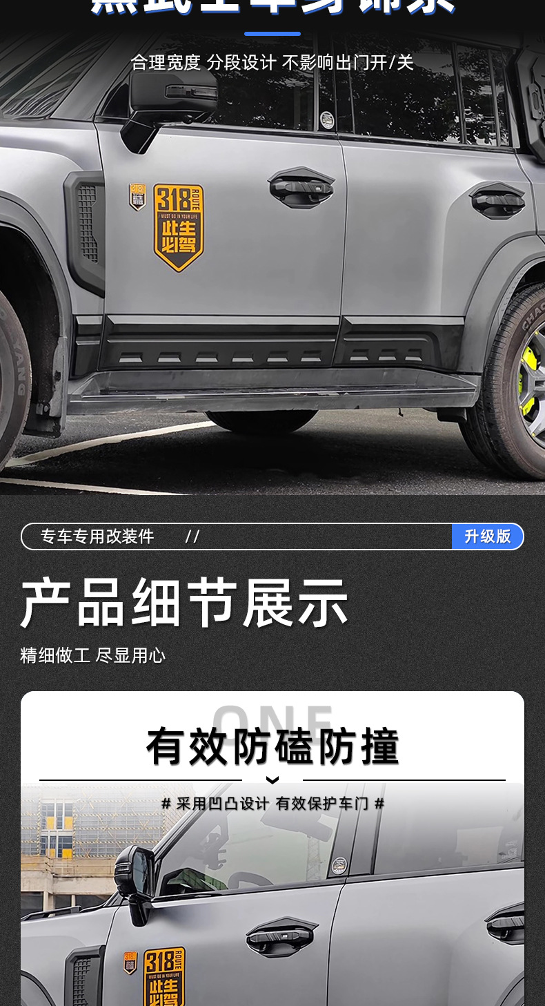 - Performance-Driven Design: Features integrated LED lights and robust styling, enhancing the vehicle’s off-road appearance and visibility, as depicted in the images.