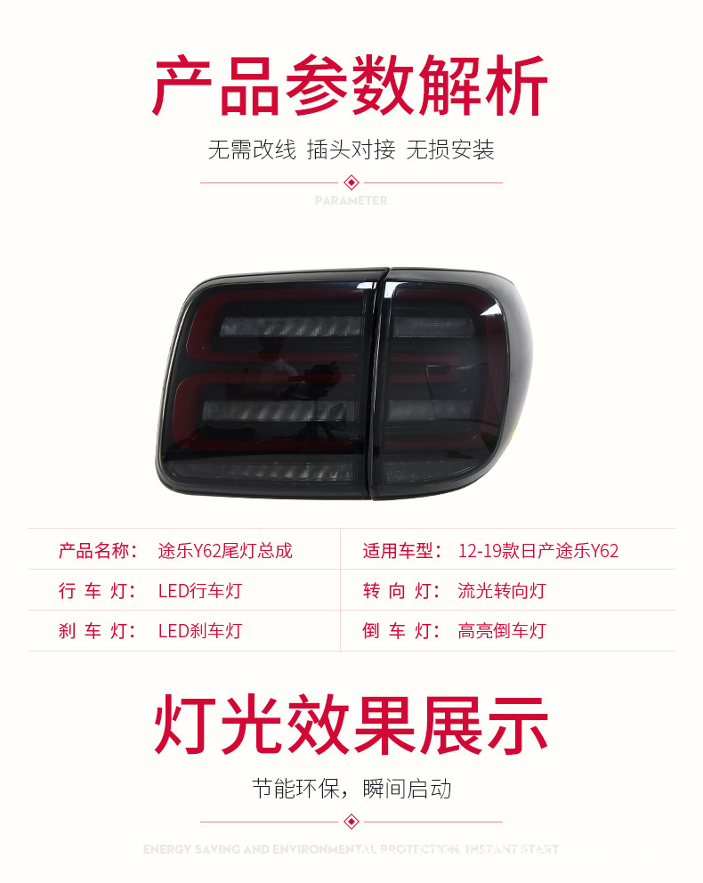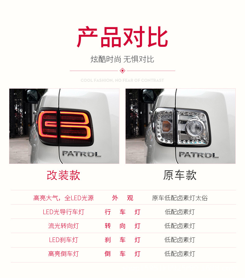 - Complete Set: Includes a full set of tail light assemblies (left and right), providing a complete lighting upgrade solution for your Nissan Patrol Y62.