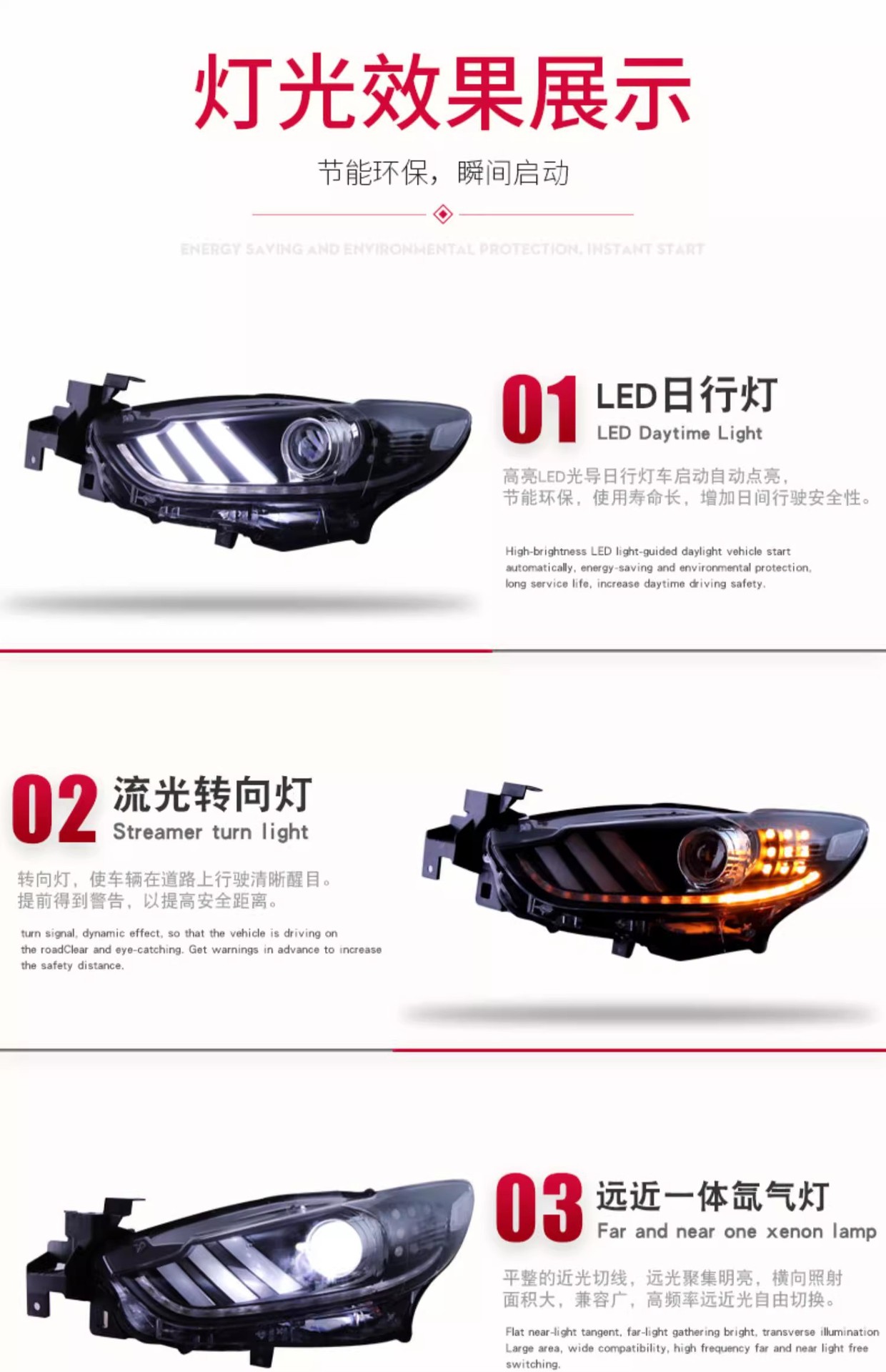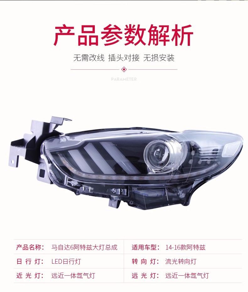 - Enhanced Styling: Upgrade your Mazda 6 Atenza with a modern, aggressive look. The clear lens design maintains optimal light output while the integrated LED and xenon features provide a distinctive, high-performance appearance on the road.