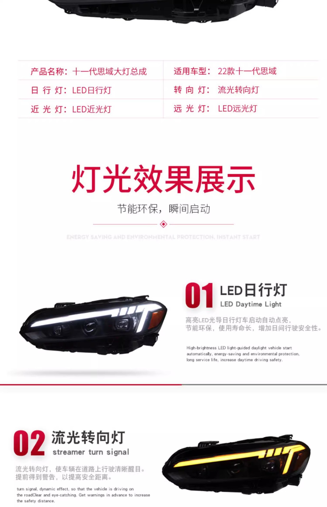 LED Projector Headlight Assembly Daytime Running Lights Sequential Turn Signal for Honda 11th Gen Civic 2022