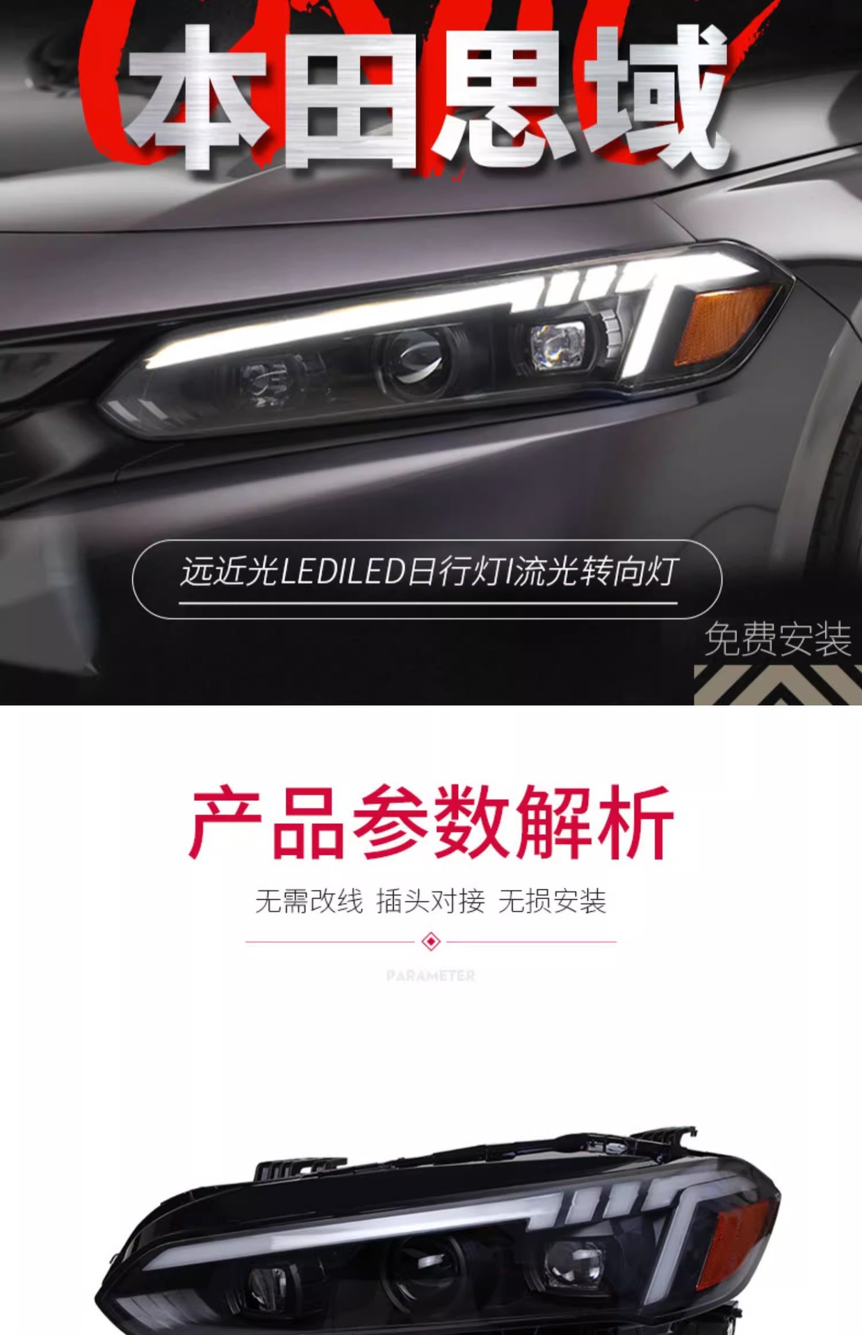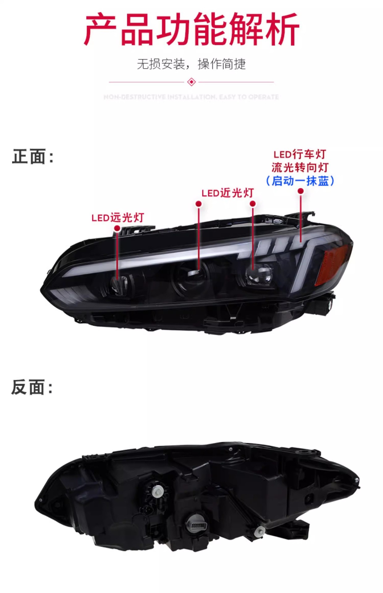 - Premium LED Illumination: Features advanced LED technology for superior brightness, clarity, and energy efficiency, providing enhanced visibility and a modern aesthetic for your Civic.