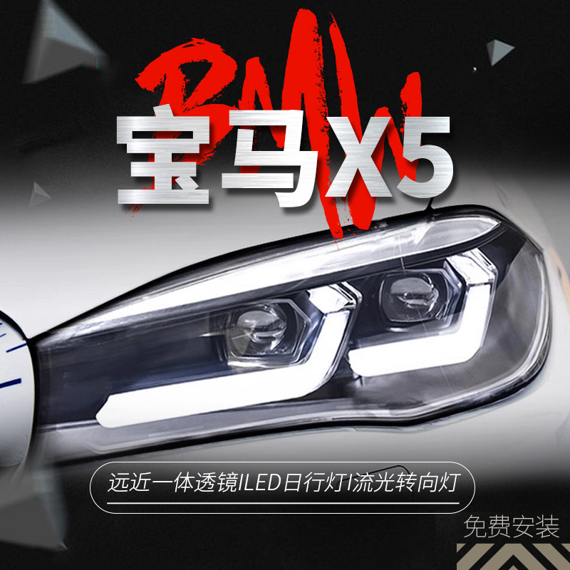 LED Projector Headlight Assembly Modified DRL Sequential Turn Signal for BMW X5 (2014-2018)