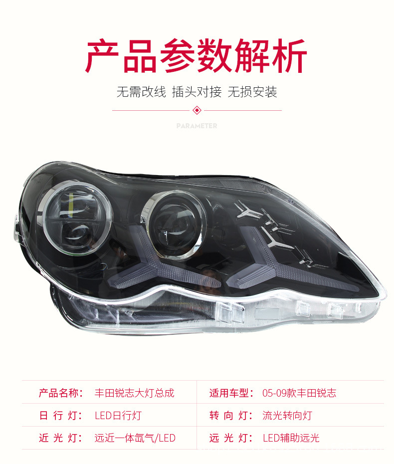 LED Projector Headlight Assembly Running Light Sequential Turn Signal Lamps for Toyota Reiz (2005-2009)