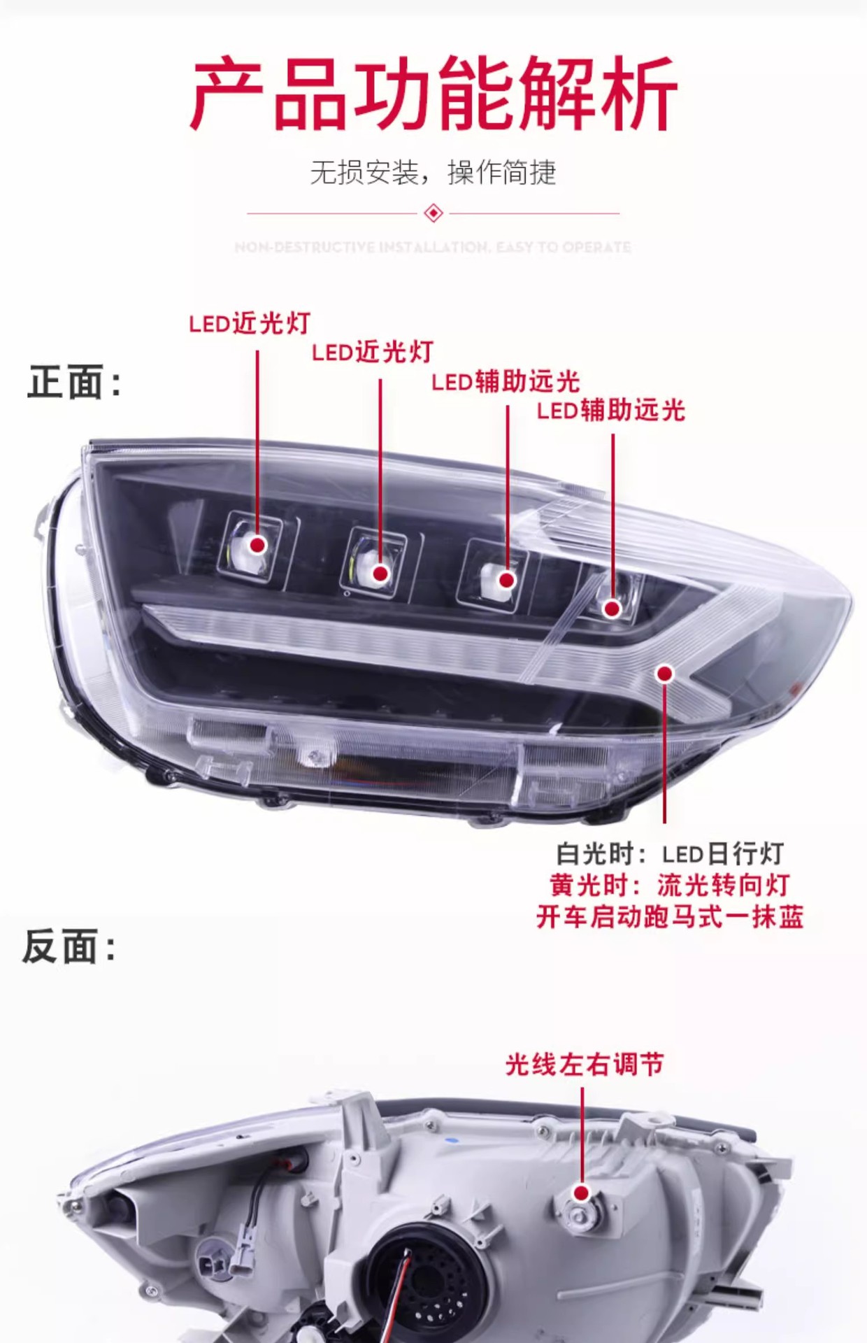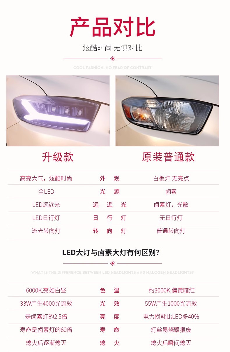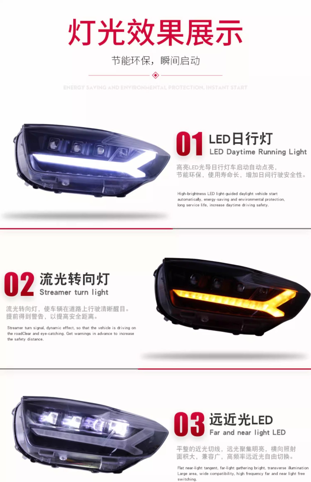- Enhanced Safety & Style: Integrated LED daytime running lights (DRL) and dynamic sequential turn signals improve road presence and signal clarity, adding a modern aesthetic touch to your vehicle.
