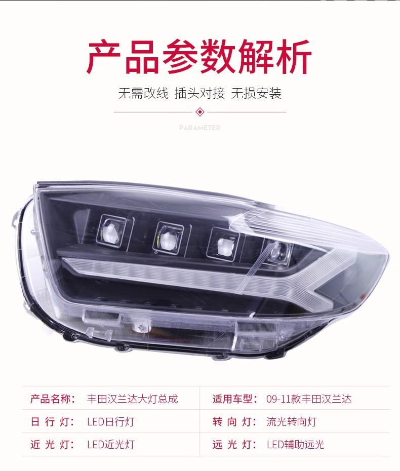 LED Projector Headlight Assembly with DRL Sequential Turn Signal for Toyota Highlander 2007-2011