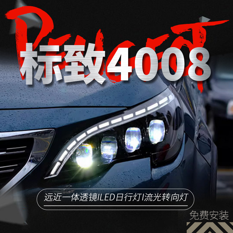 LED Projector Headlight Assembly with DRL Sequential Turn Signal for Peugeot 4008 5008