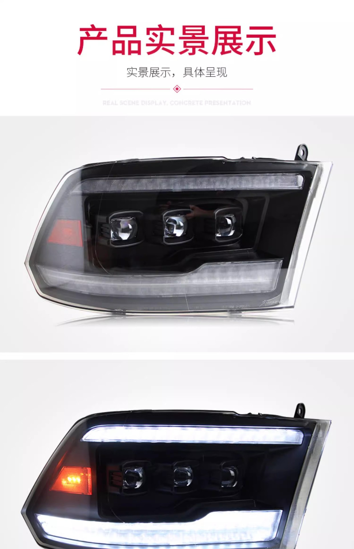 LED Projector Headlight Assembly with Flowing Turn Signal DRL for Dodge Ram 2008-2018