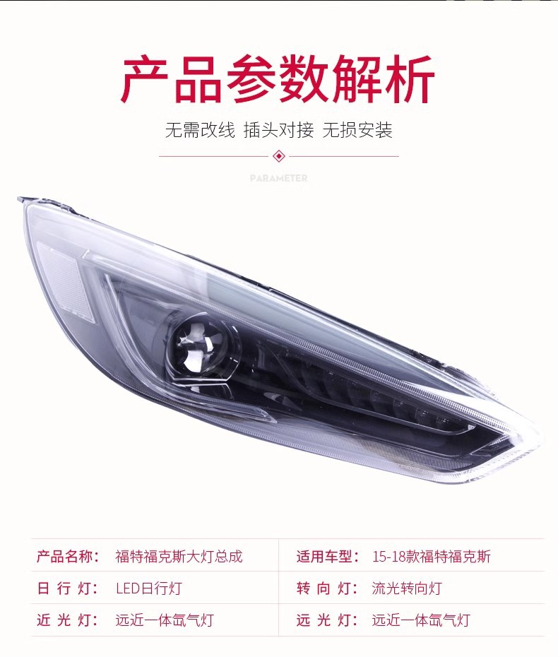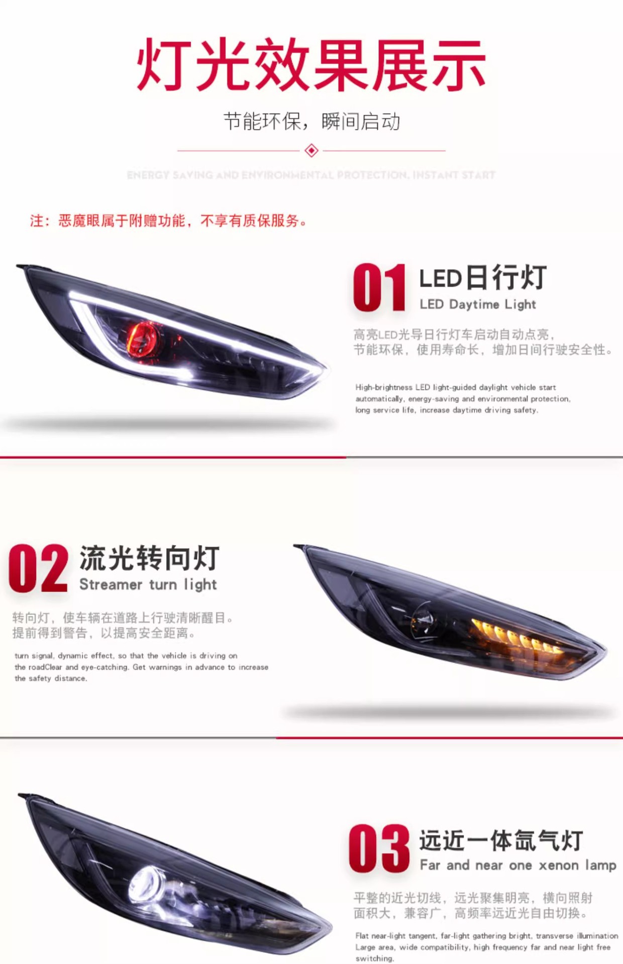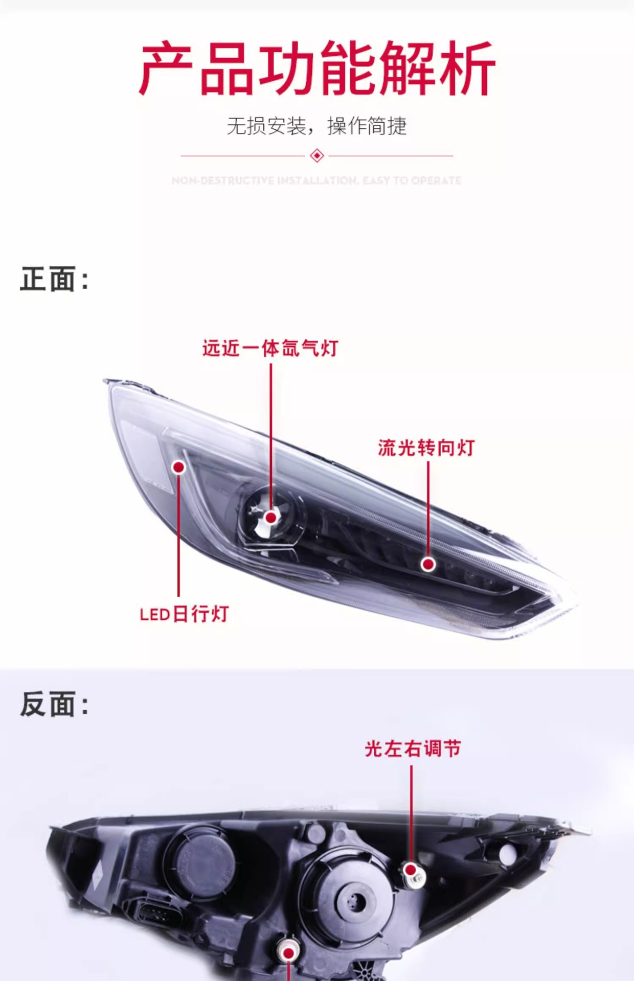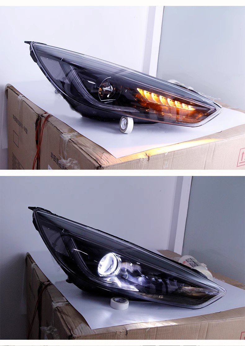 LED Projector Headlight Assembly with Flowing Turn Signal DRL for Ford Focus 2015-2018