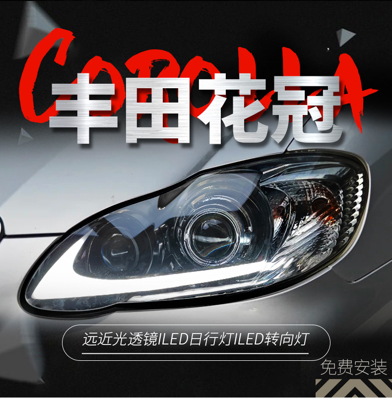 LED Projector Headlight Assembly with LED DRL and Turn Signal for Toyota Corolla 2004-2009