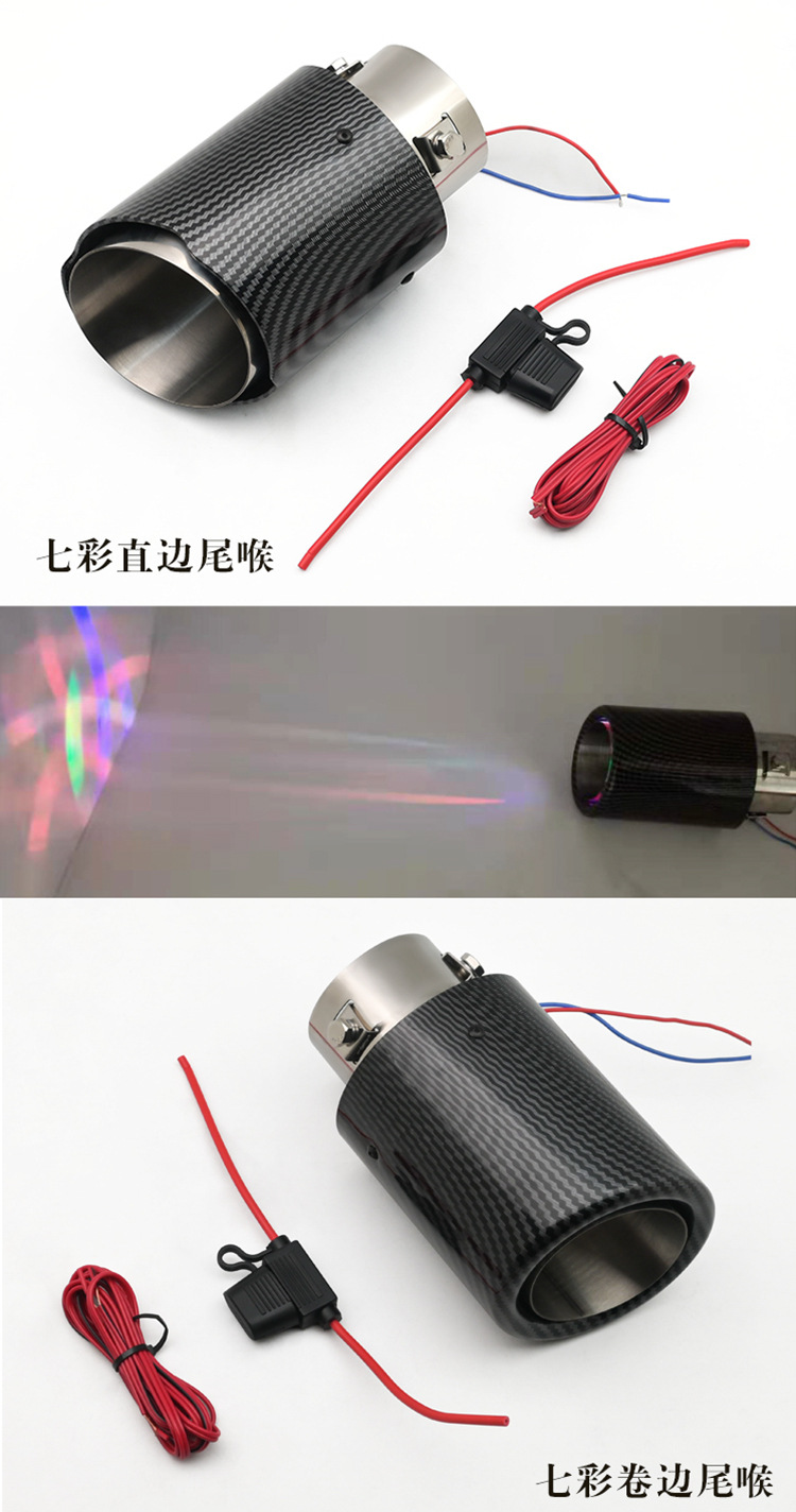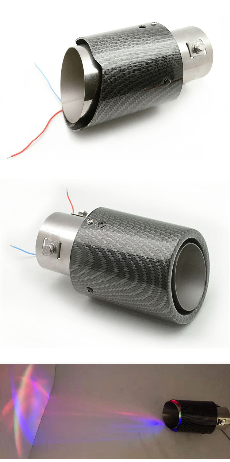 LED RGB Light Exhaust Muffler Tip Carbon Fiber Universal