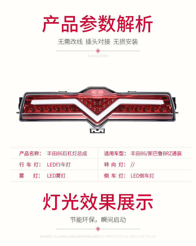 LED Rear Bumper Light Assembly (Running Light, Reverse Light, Fog Light) for Toyota 86, Subaru BRZ