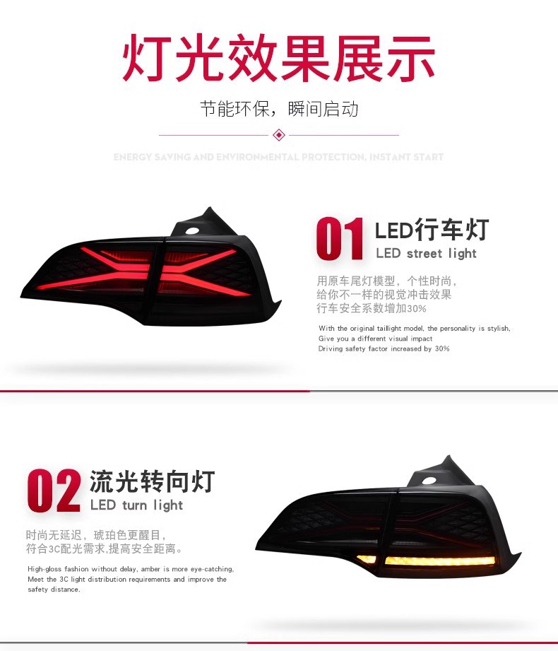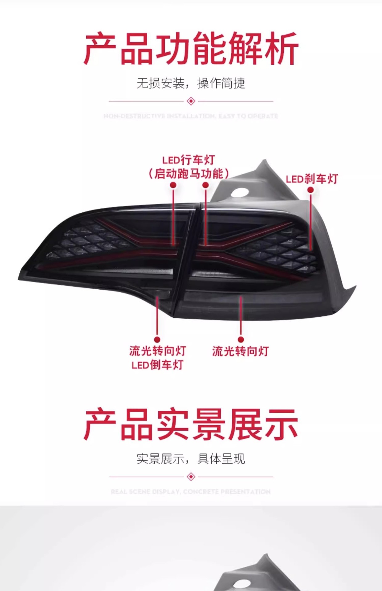 LED Rear Taillight Assembly for Tesla Model 3, Model Y Dynamic Turn Signal Stop Lights