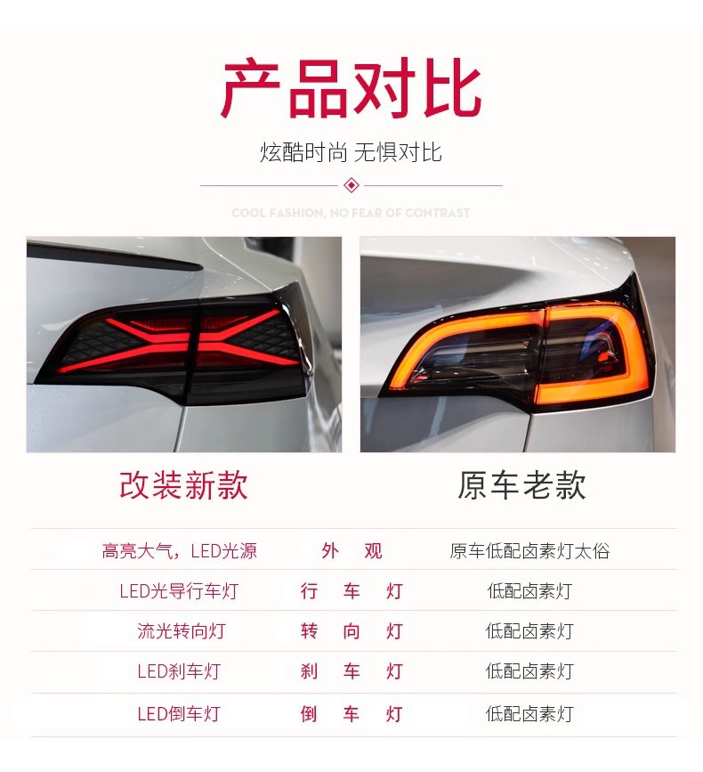 - Stylish Design Upgrade: Features a sleek LED red/smoked black finish with dynamic sequential turn signals and police-style running lights, adding a distinctive, modern, and aggressive look to your Tesla.