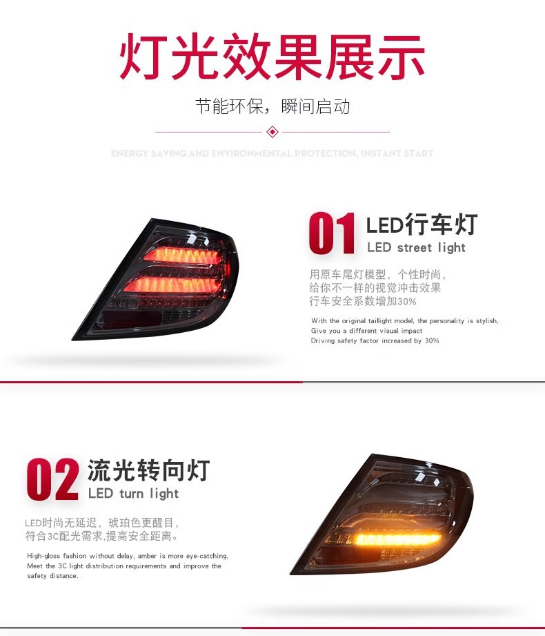 - Enhanced Aesthetics & Styling: Upgrade your Mercedes C-Class with modern LED running lights, dynamic flowing turn signals, and sharp brake lights, giving your vehicle a refreshed, more aggressive and luxurious appearance.