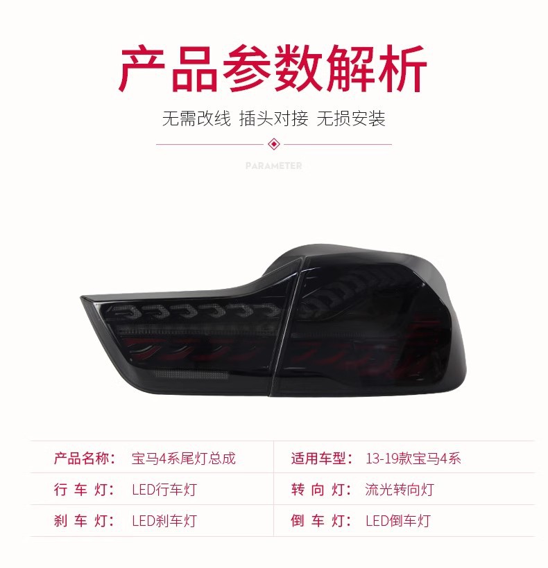LED Running Turn Signal Full Taillight Assembly for BMW 4 Series F32 F36 M4 F82 Dragon Scale Style