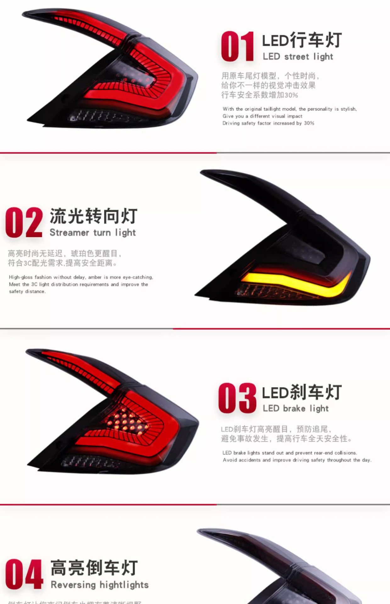 LED Scanning Breathing Flowing Turn Signal Celestial Style Tail Light Assembly for Honda Civic 10th Gen