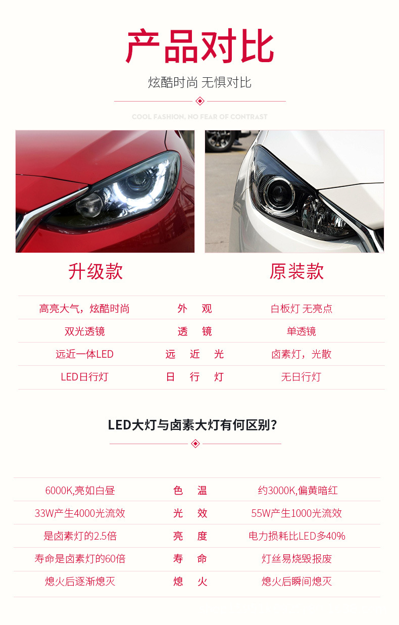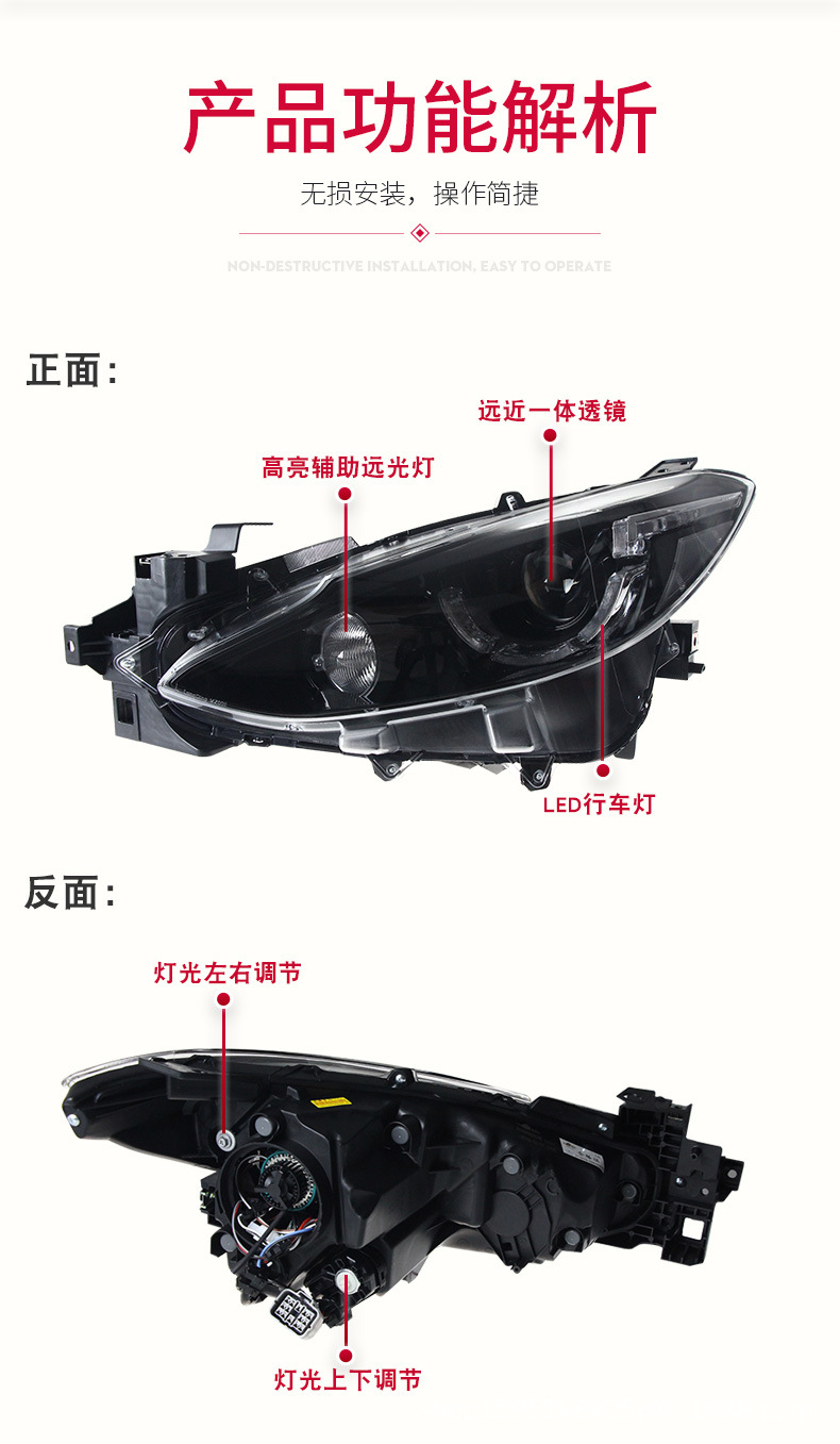 LED Scoop Design DRL Projector Xenon Headlight Assembly for Mazda Axela (2014-2016)