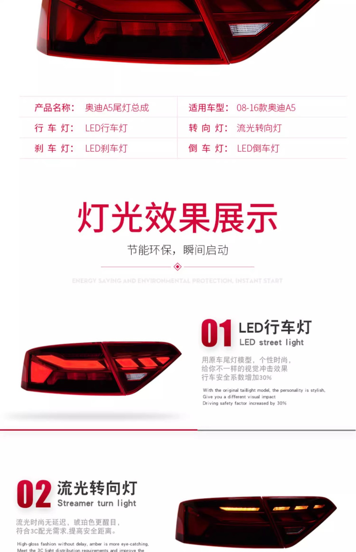 LED Sequential Flow Tail Light Assembly for Audi A5 S5 (2008-2016)