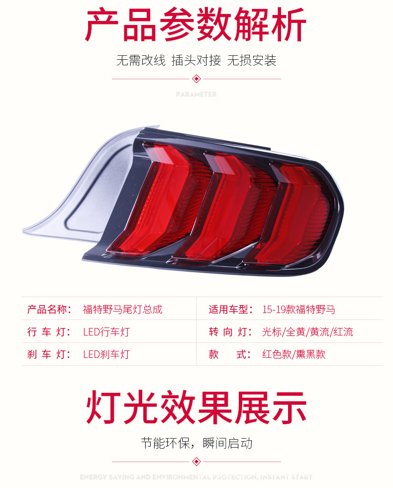- Enhanced Style & Safety: Features dynamic sequential turn signals and multiple lighting modes (red/smoked/white options available) to upgrade your Mustang’s aesthetics and improve visibility.