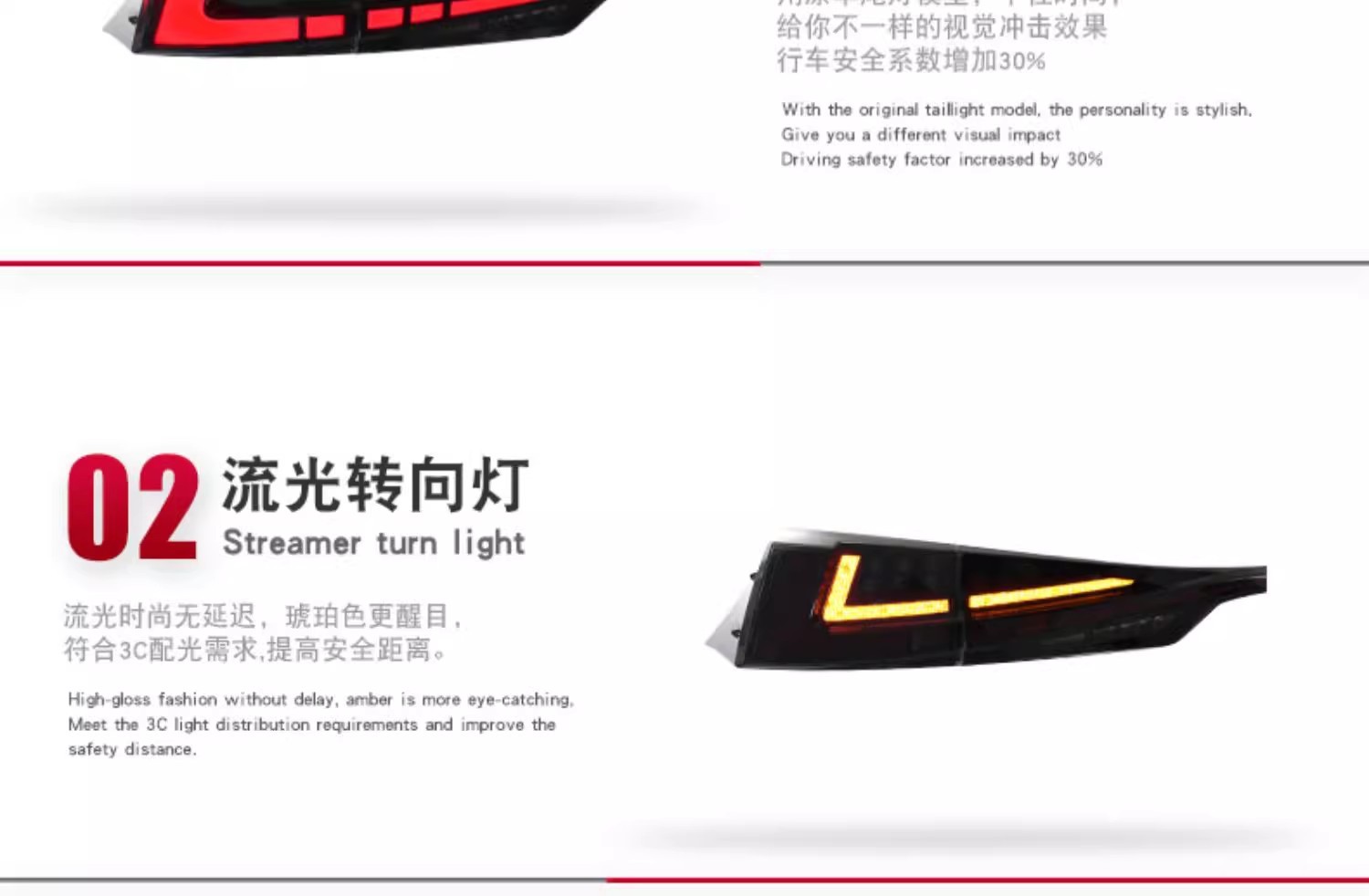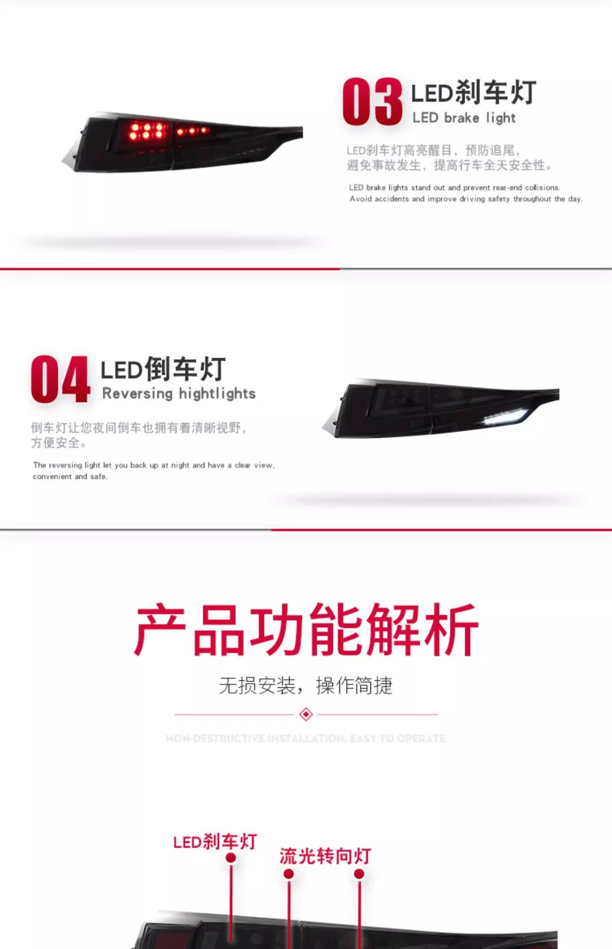 - Dynamic Flowing Design: Incorporates a distinctive sequential turn signal function and a贯穿 (penetrating) light bar design, dramatically enhancing your car’s rear appearance and driving safety with stylish illumination.