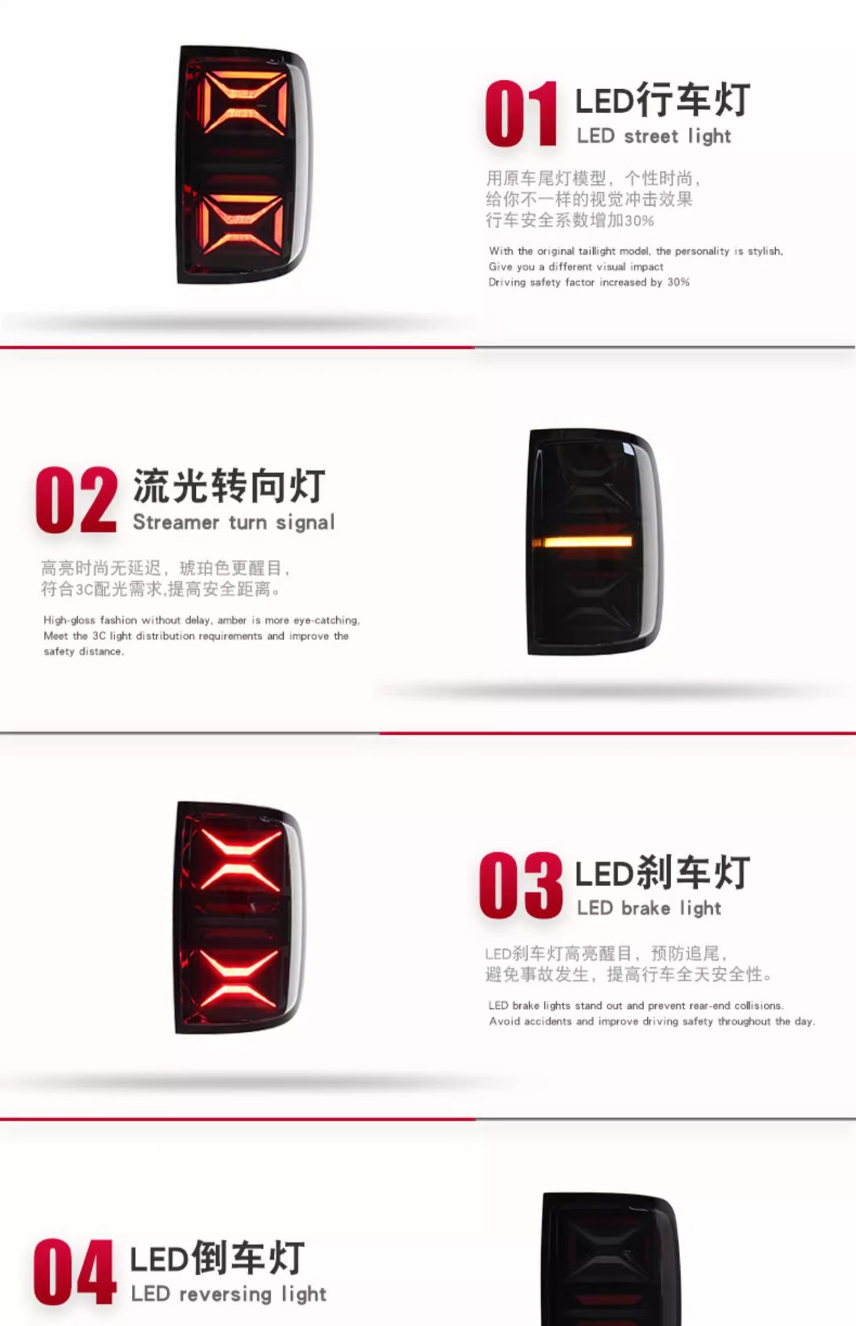 - Enhanced Design Aesthetics: Features a modern LED sequential turn signal and dynamic flowing light effect, significantly upgrading your vehicle’s rear appearance with a stylish and eye-catching look, improving road presence.