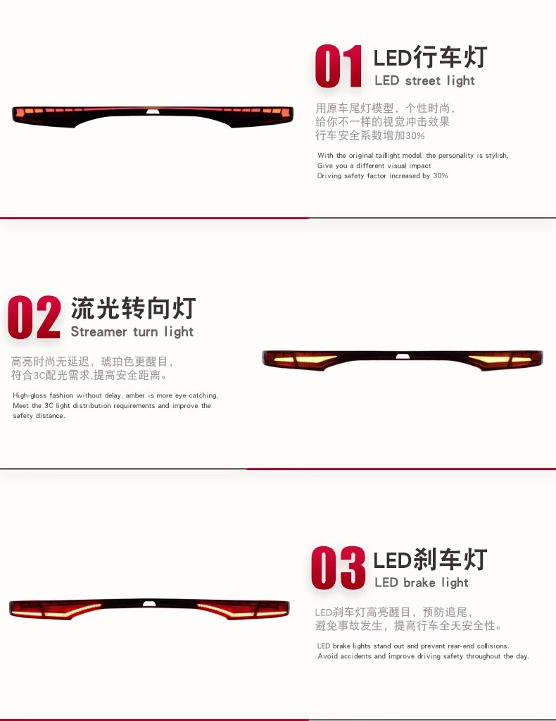 - Dynamic Sequential Turn Signal: Upgrade your vehicle’s aesthetics with a modern贯穿式(贯穿式) design and dynamic sequential flowing turn signals that catch attention.