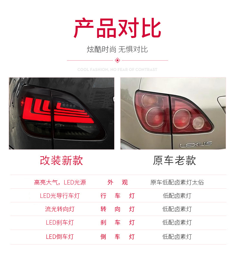 - Complete Set: Includes a full set of tail light assemblies, providing a comprehensive solution to refresh and improve the visibility and aesthetic of your Lexus RX series.