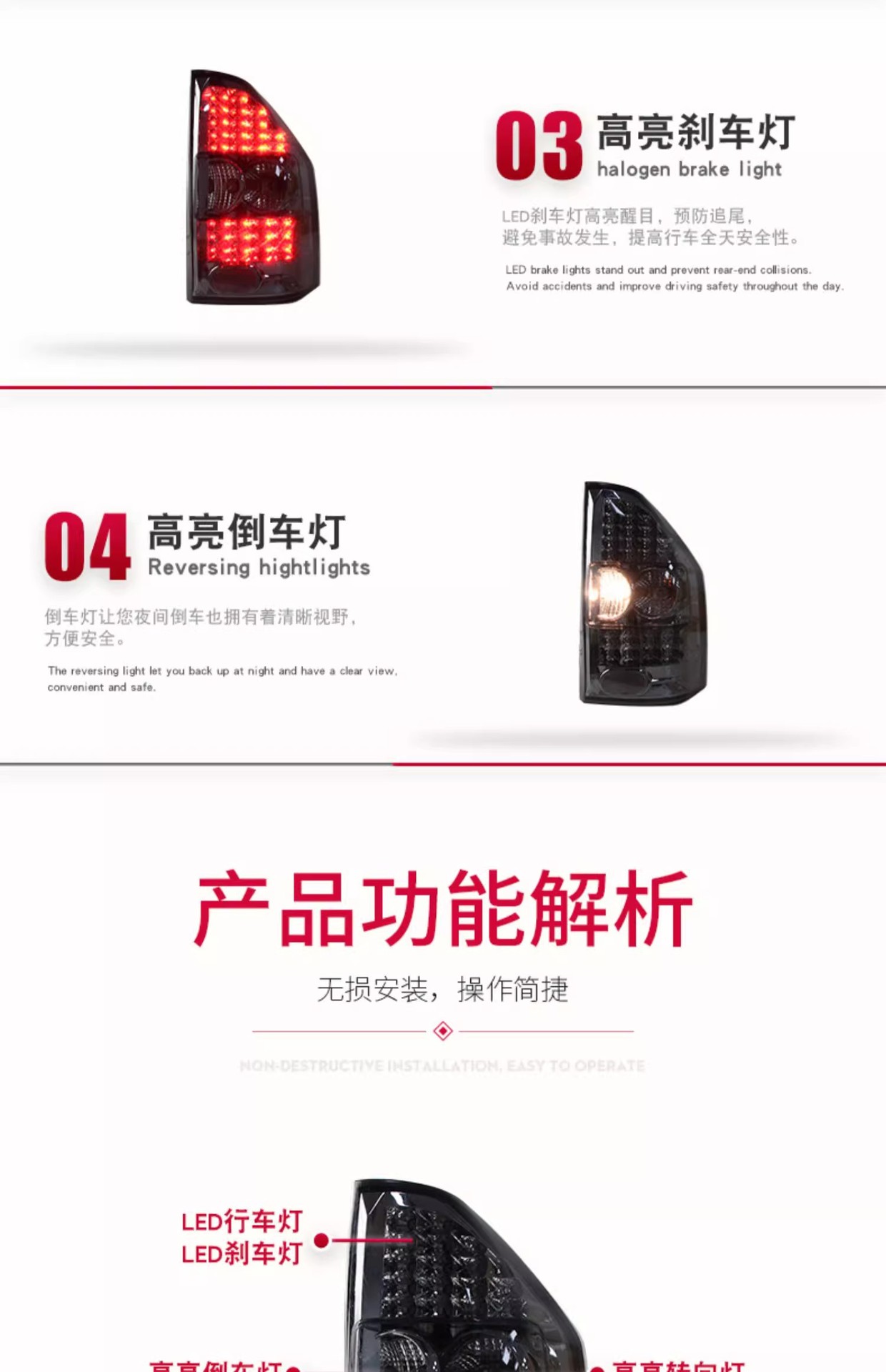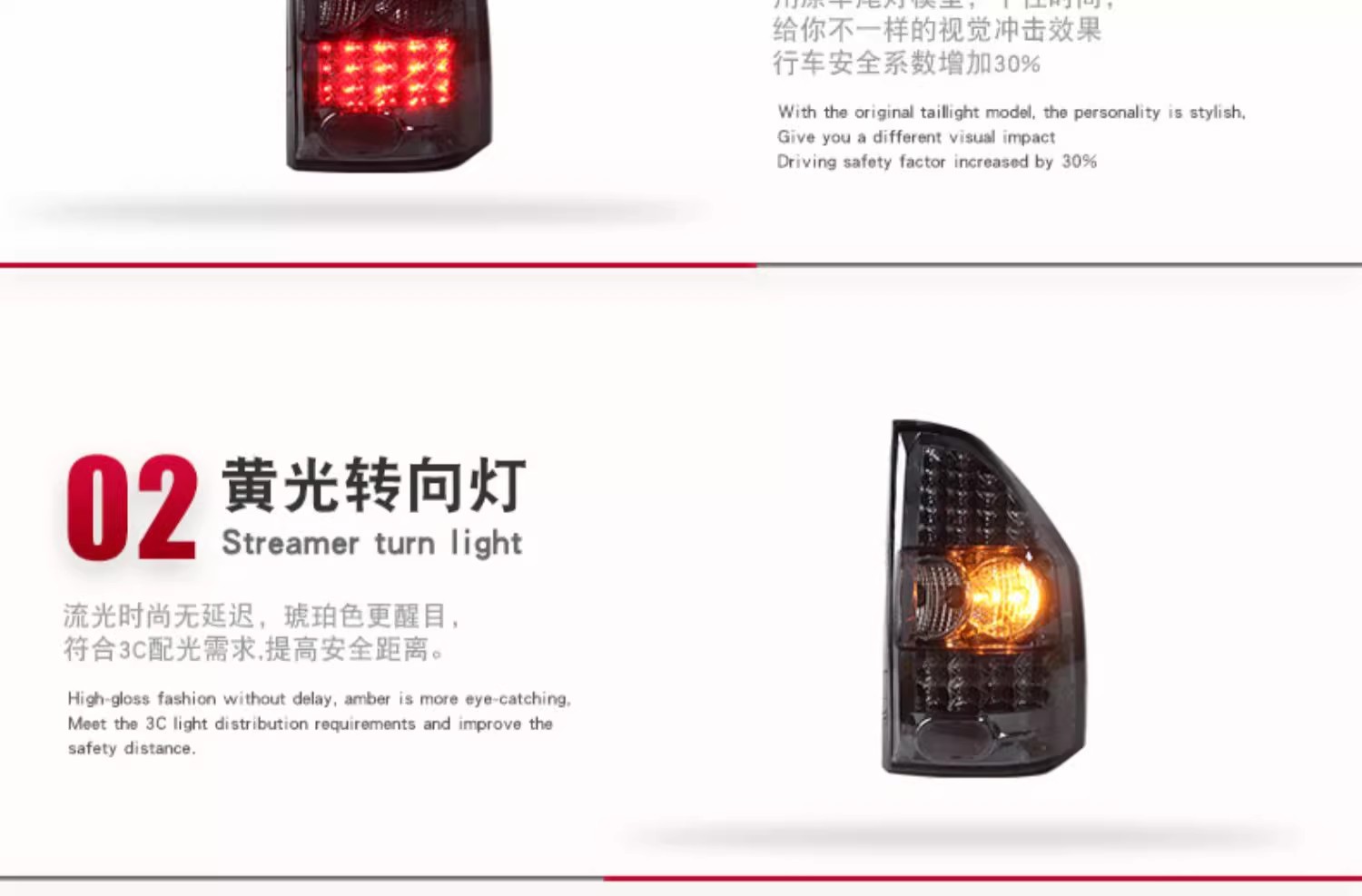 - Enhanced Aesthetics: Features a sleek smoked lens design with integrated LED running lights and brake lights, upgrading your vehicle’s rear modern and aggressive look.
