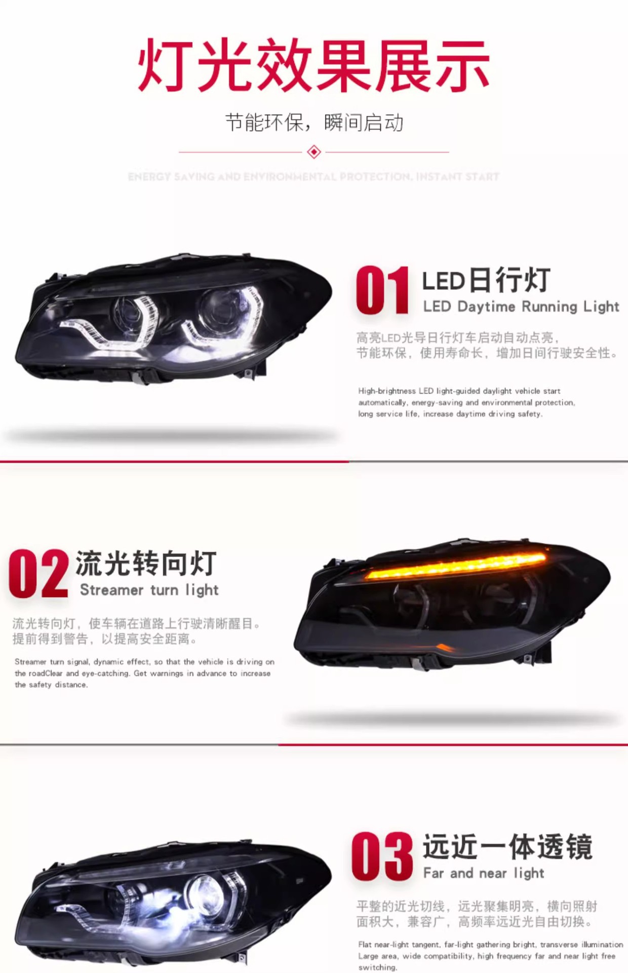 - Enhanced Aesthetics: Upgrade your vehicle’s appearance with a modern LED spoon-style daytime running lights (DRL) and advanced turn signal functionality, adding a distinct and stylish look.