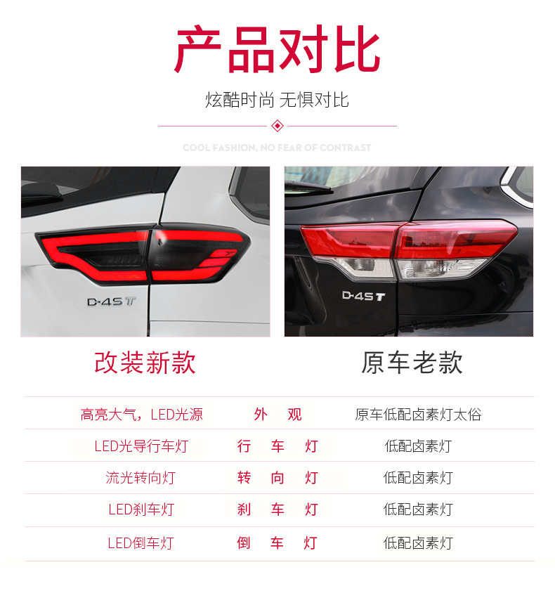 - Enhanced Design & Style: Features a sleek LED design with options for red or smoke black finish, instantly upgrading your Highlander’s aesthetics. Provides a modern and aggressive look, enhancing your vehicle’s visual appeal.