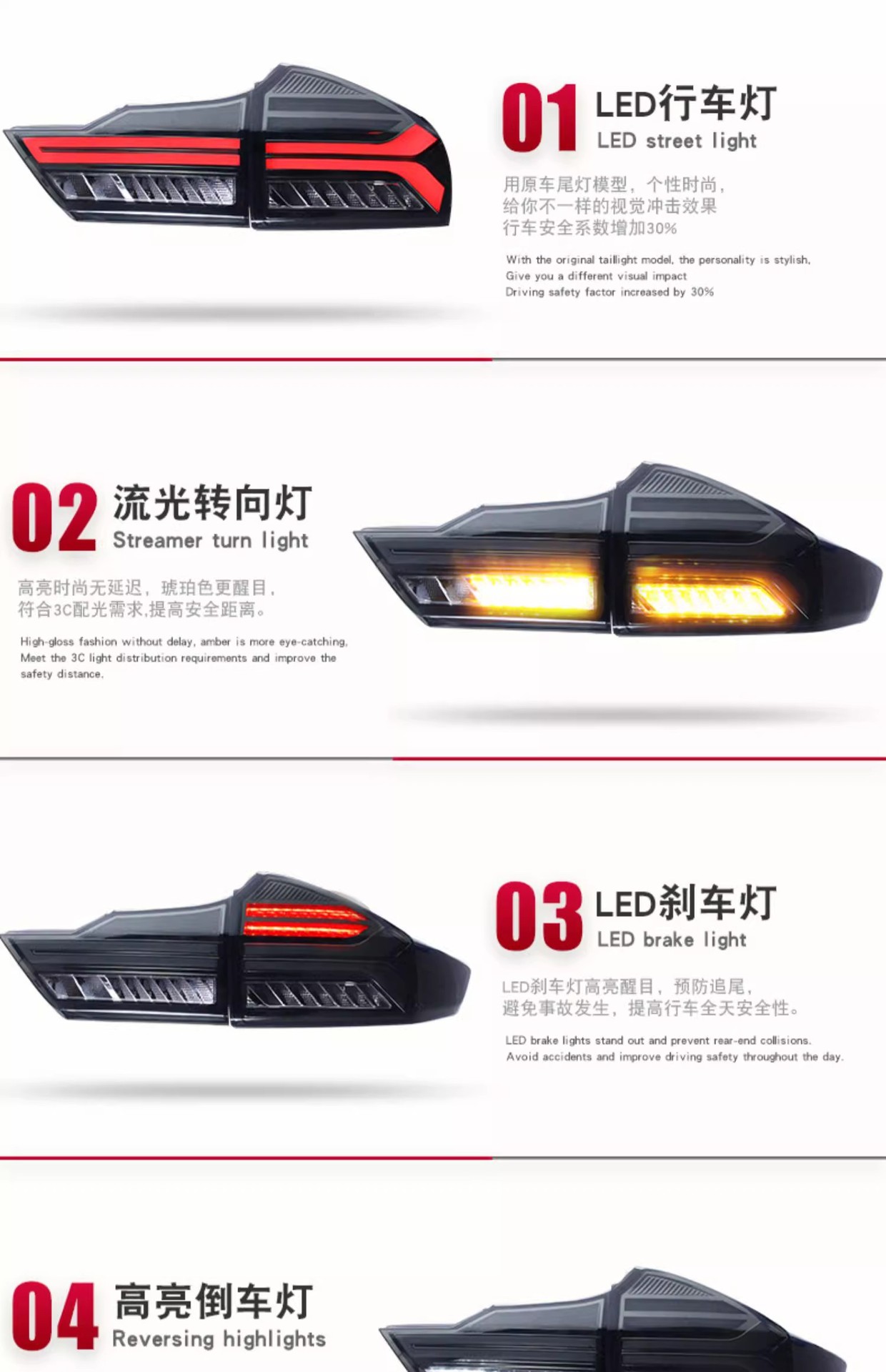 LED Tail Light Assembly Rear Audi Style Flowing Turn Signal LED DRL for Honda City 2015-2019