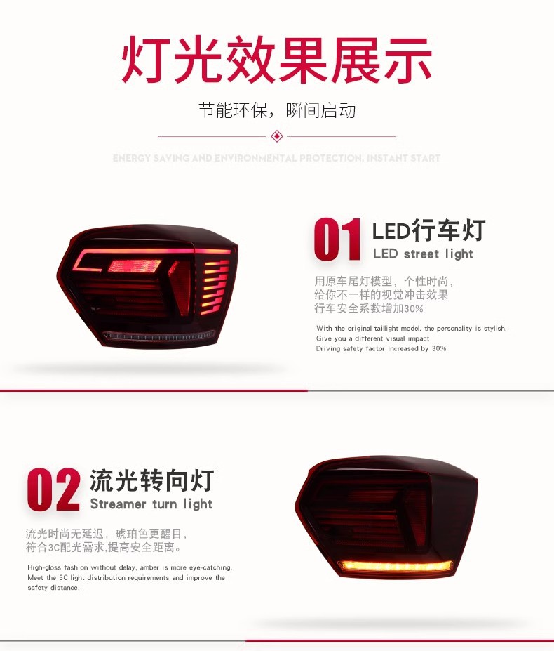 LED Tail Light Assembly Running Light Turn Signal for Volkswagen Polo (2019-2022)